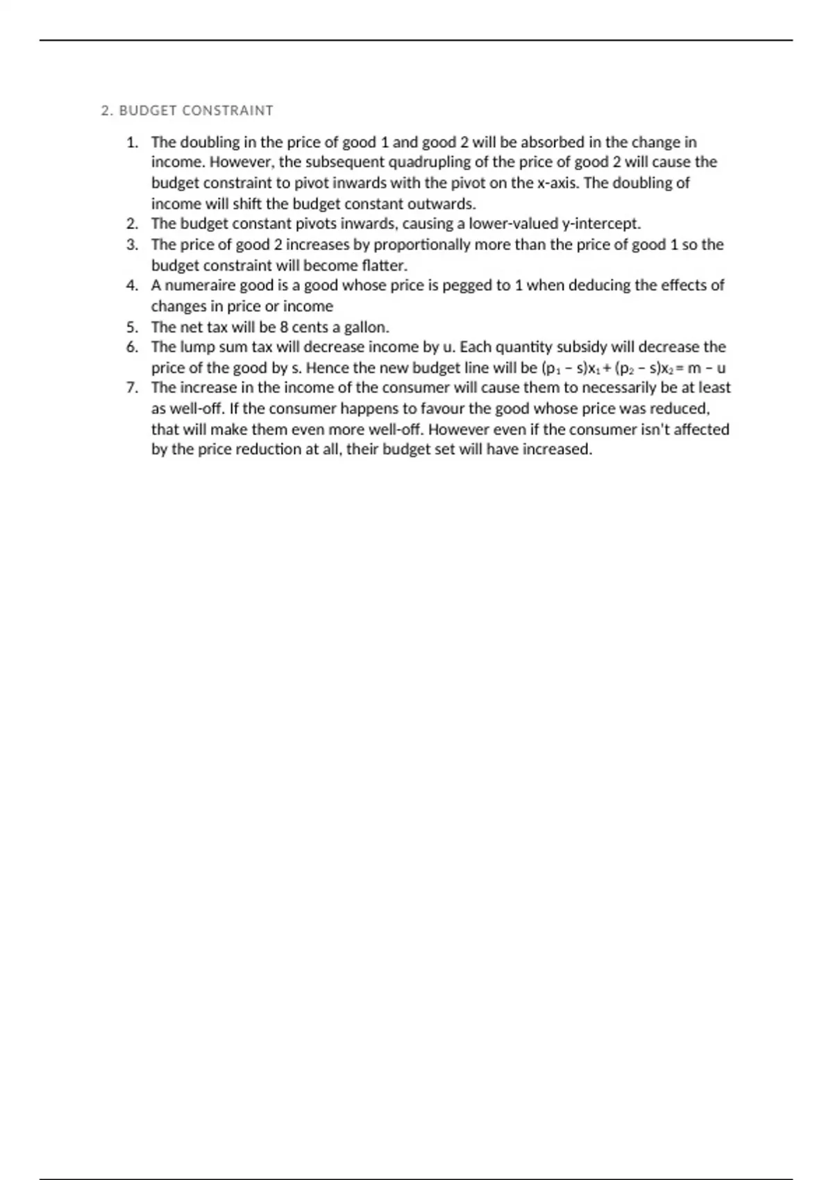 budget constraint to pivot inwards with the pivot on the x-axis. The doubling of