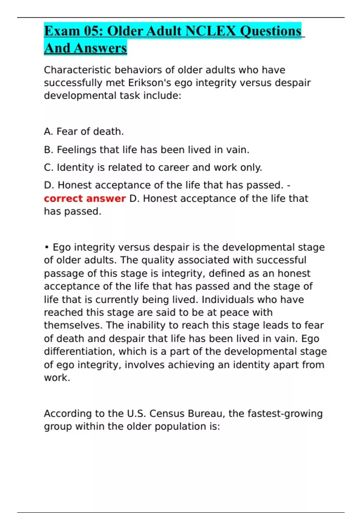 - Older Adult NCLEX