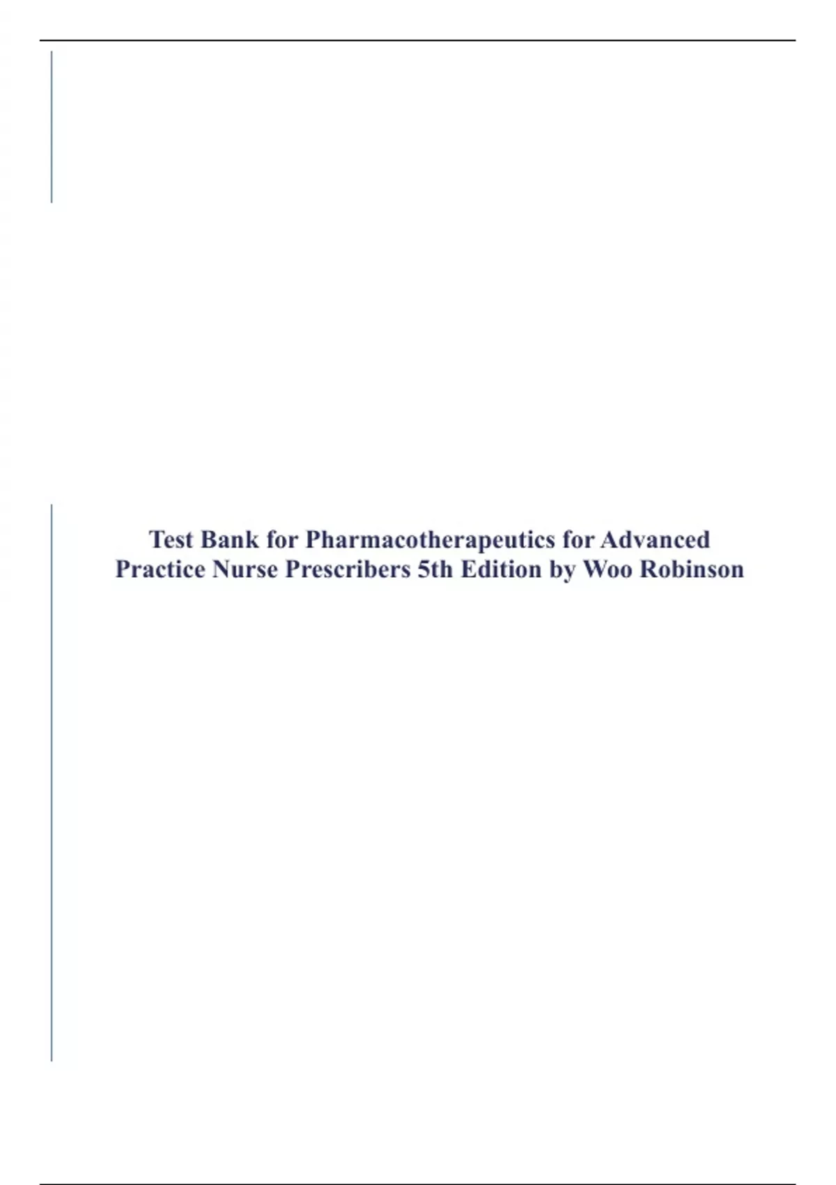 ,Pharmacotherapeutics for Advanced Practice Nurse Prescribers, 5th edition Woo Robinson Test Bank