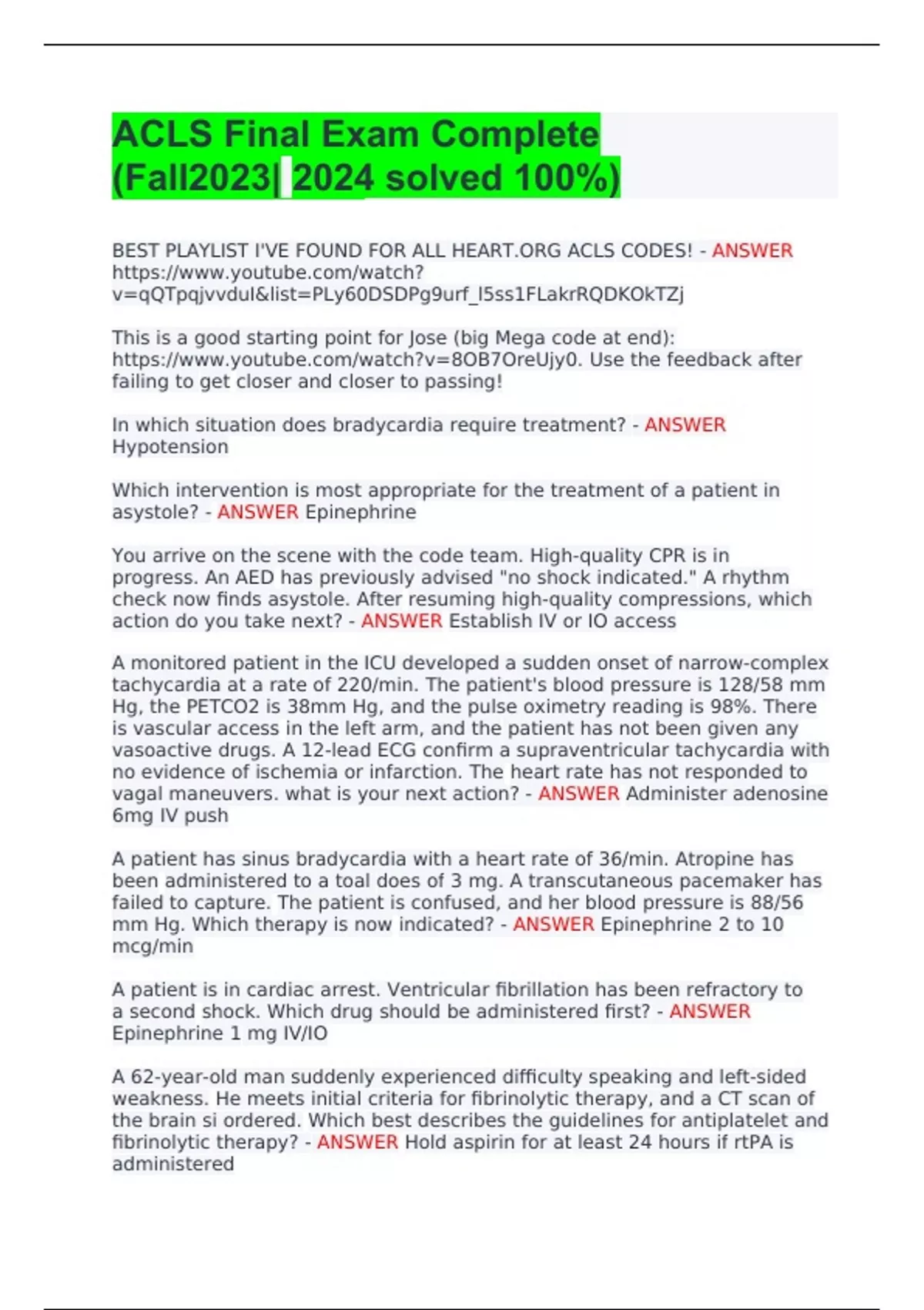ACLS Final Exam Complete (Fall2023| 2024 solved 100%) GRADED A++ACLS Final Exam Complete (Fall2023| 2024 solved 100%) GRADED A++ACLS Final Exam Complete (Fall2023| 2024 solved 100%) GRADED A++ACLS Final Exam Complete (Fall2023| 2024 solved 100%) GRADED A++