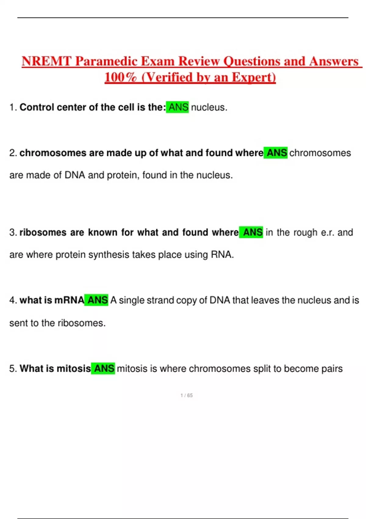 NREMT Paramedic Exam Review Questions and Answers 100% (Verified by an Expert) NREMT Paramedic Exam Review Questions and Answers 100% (Verified by an Expert)