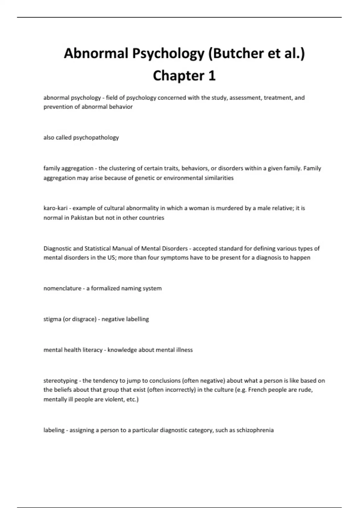 Abnormal Psychology (Butcher et al.) Chapter 1