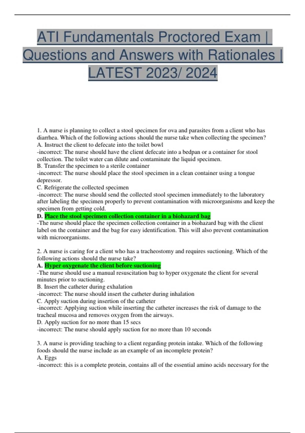 ATI Fundamentals Proctored Exam | Questions and Answers with Rationales | LATEST 2023/ 2024