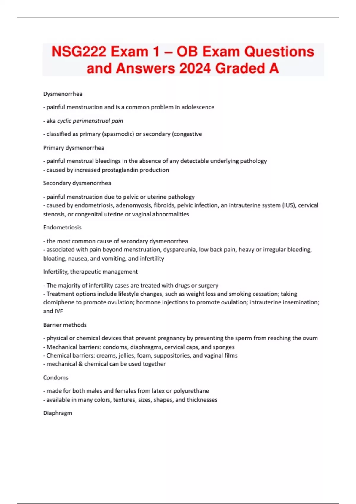nsg222 exam 1 ob exam questions and answers 2024