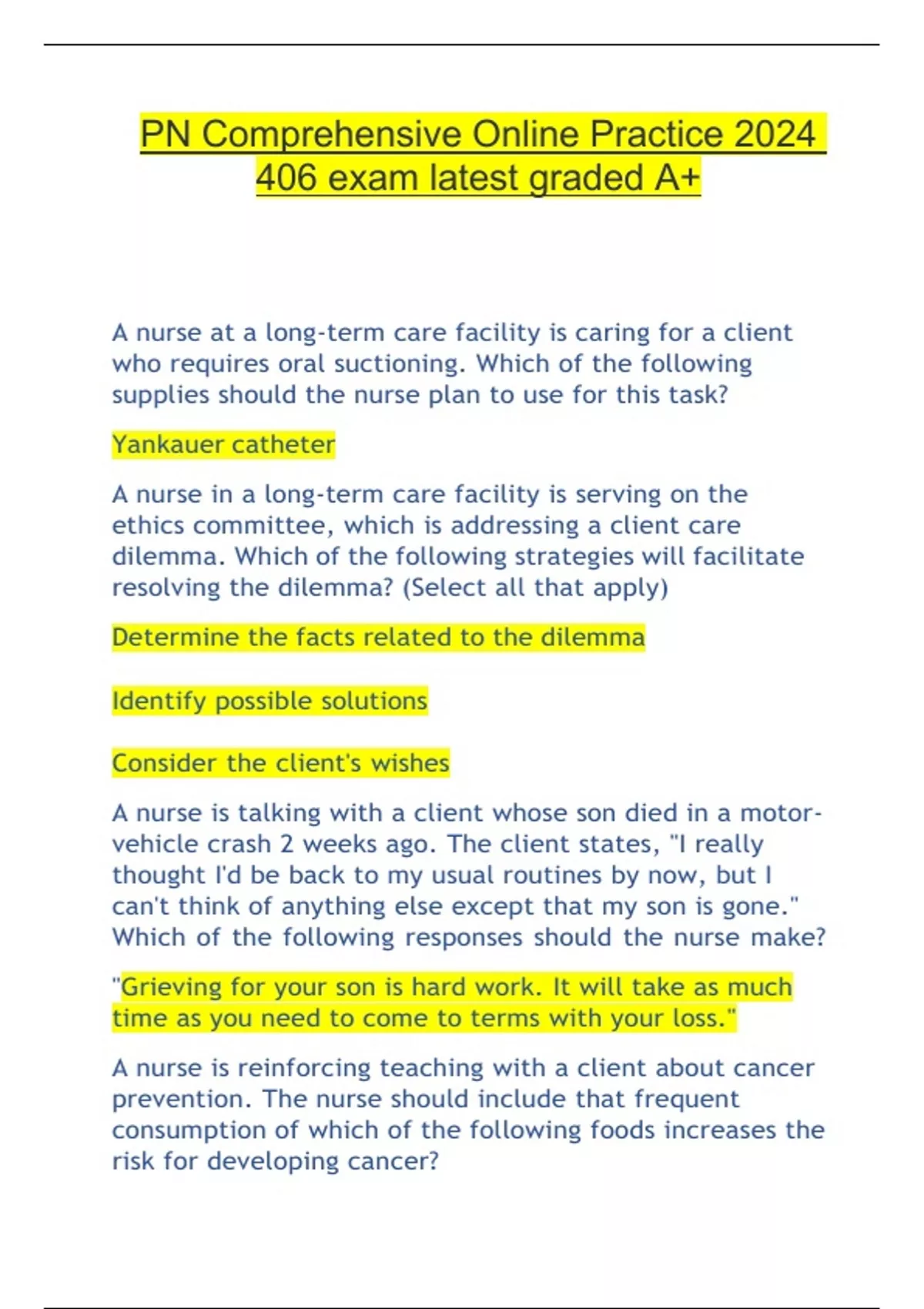 PN Comprehensive Online Practice 2024 406 exam latest graded A+