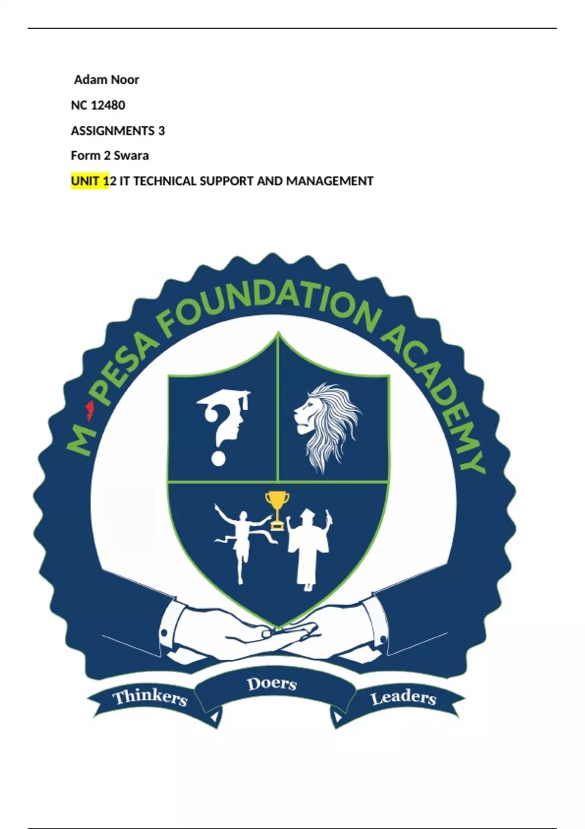 Adam Noor NC 12480 ASSIGNMENTS 3 Form 2 Swara UNIT 12 IT TECHNICAL SUPPORT AND MANAGEMENT P5 Produce an IT support and management support that adequately meets most of the client’s requirements. A sufficient incident response plan offers a course of action for all significant incidents. Some incidents lead to massive network or data breaches that can impact the organization for days or even months. When a significant disruption occurs, your organization needs a thorough, detailed incident response plan to help IT staff stop, contain, and control the incident quickly. For physical disruptors, such as natural disasters and flooding. Incident recovery team An incident recovery team is the group of people assigned to implement the incident response plan. Generally, these are members of the IT staff who collect, preserve, and analyze incident-related data. Your IT staff may need to work with lawyers and communications experts to make sure that legal obligations are met. Why do the organization need an incident response plan? If your network hasn’t been threatened yet, it will be. If it has, then you know the chaos that can follow a cyber attack. Whether a threat is virtual (security breaches) or physical (power outages or natural disasters), losing data or functionality can be crippling. An incident response plan and a disaster recovery plan help you mitigate risk and prepare for a range of events. How can the organization be sure the network is ready for a disaster? The network will never be 100 percent secure, so you must prepare both your network and your employees for crises to come. In addition to an incident response plan, you need a thorough disaster recovery plan that can mitigate the damage caused by a disaster. Are there tools that help automate an incident response plan? Cisco Umbrella Investigate helps to automate many of the most common steps in an incident response. Investigate's rich threat intelligence adds the security context needed to uncover and predict threats. Follow the five steps below to maintain business continuity. How to create an incident response plan 1.Determine the critical components of the network To protect your network and data against major damage, you need to replicate and store your data in a remote location. Because business networks are expansive and complex, you should determine your most crucial data and systems. Prioritize their backup, and note their locations. These actions will help you recover your network quickly. 2.Identify single points of failure in the network and address them Just as you should back up your data, you should have a plan B for every critical component of your network, including hardware, software, and staff roles. Single points of failure can expose your network when an incident strikes. Address them with redundancies or software failover features. Do the same with your staff. If a designated employee can’t respond to an incident, name a second person who can take over. By having backups and fail-safes in place, you can keep incident response and operations in progress while limiting damage and disruption to your network and your business." 3.Create a workforce continuity plan During a security breach or a natural disaster, some locations or processes may be inaccessible. In either case, the top priority is employee safety. Help ensure their safety and limit business downtime by enabling them to work remotely. Build out infrastructure with technologies such as virtual private networks (VPNs) and secure web gateways to support workforce communication. 4.Create an incident response plan Draw up a formal incident response plan, and make sure that everyone, at all levels in the company, understands their roles. An incident response plan often includes: •A list of roles and responsibilities for the incident response team members. •A business continuity plan. •A summary of the tools, technologies, and physical resources that must be in place. •A list of critical network and data recovery processes. •Communications, both internal and external. 5.Training the staff on incident response Only IT may need to fully understand the incident response plan. But it is crucial that everyone in your organization understands the importance of the plan. After you’ve created it, educate your staff about incident response. Full employee cooperation with IT can reduce the length of disruptions. In addition, understanding basic security concepts can limit the chances of a significant breach. Disaster recovery is an organization’s method of regaining access and functionality to its IT infrastructure after events like a natural disaster and cyber attack A variety of disaster recovery (DR) methods can be part of a disaster recovery plan.