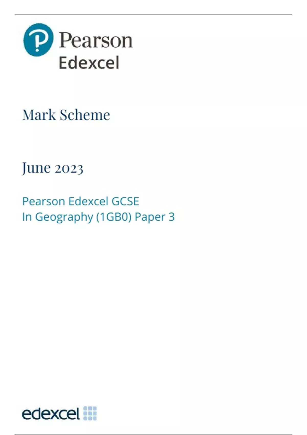 GCSE EDEXCEL June 2024 Geography B Paper 3 Actual Mark Scheme