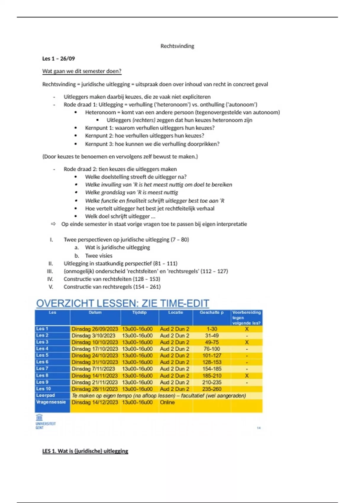 Dit is een samenvatting van het vak 'rechtsvinding' gedoceerd door Frederik Peeraer. De samenvatting is gebaseerd op de lessen, PowerPoints en op de syllabus. Dit zie je terug in de structuur, aangezien ieder stuk begint met 'les x' en de titels gemarkeerd staan met 'hoofstuk' of 'afdeling'. Helemaal achteraan vind je vragen van leerlingen terug en eveneens een extra stuk over de Klimaatzaak. Veel plezier!