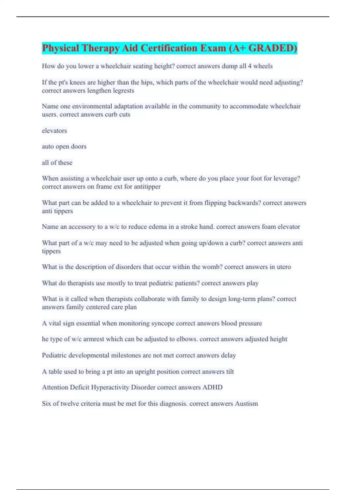 Physical Therapy Aid Certification Exam (A+ GRADED)