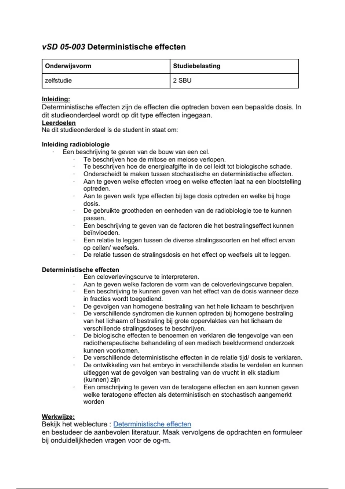 · Onderscheidt te maken tussen stochastische en deterministische effecten.