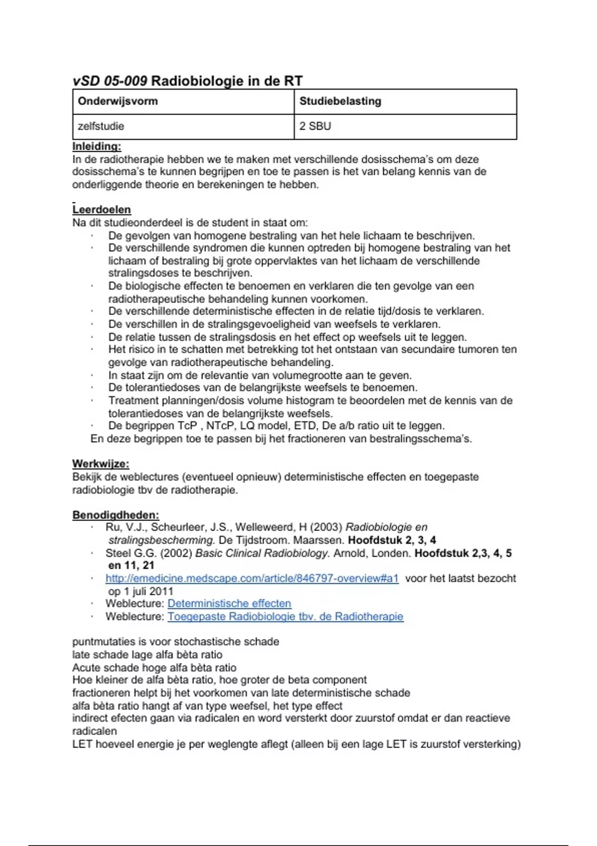 vSD 05-009 Radiobiologie in de RT