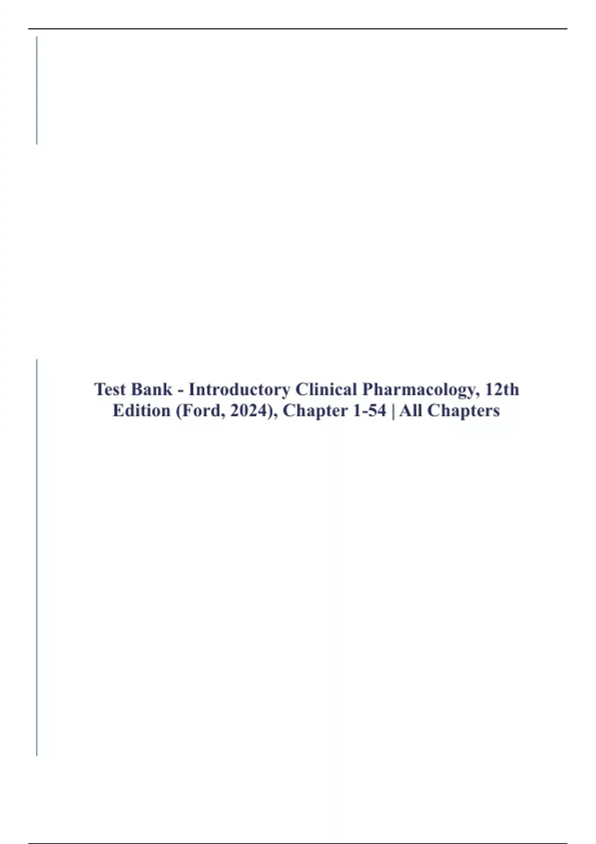 , Introductory Clinical Pharmacology 12th Edition Susan Ford Nursing Test Bank