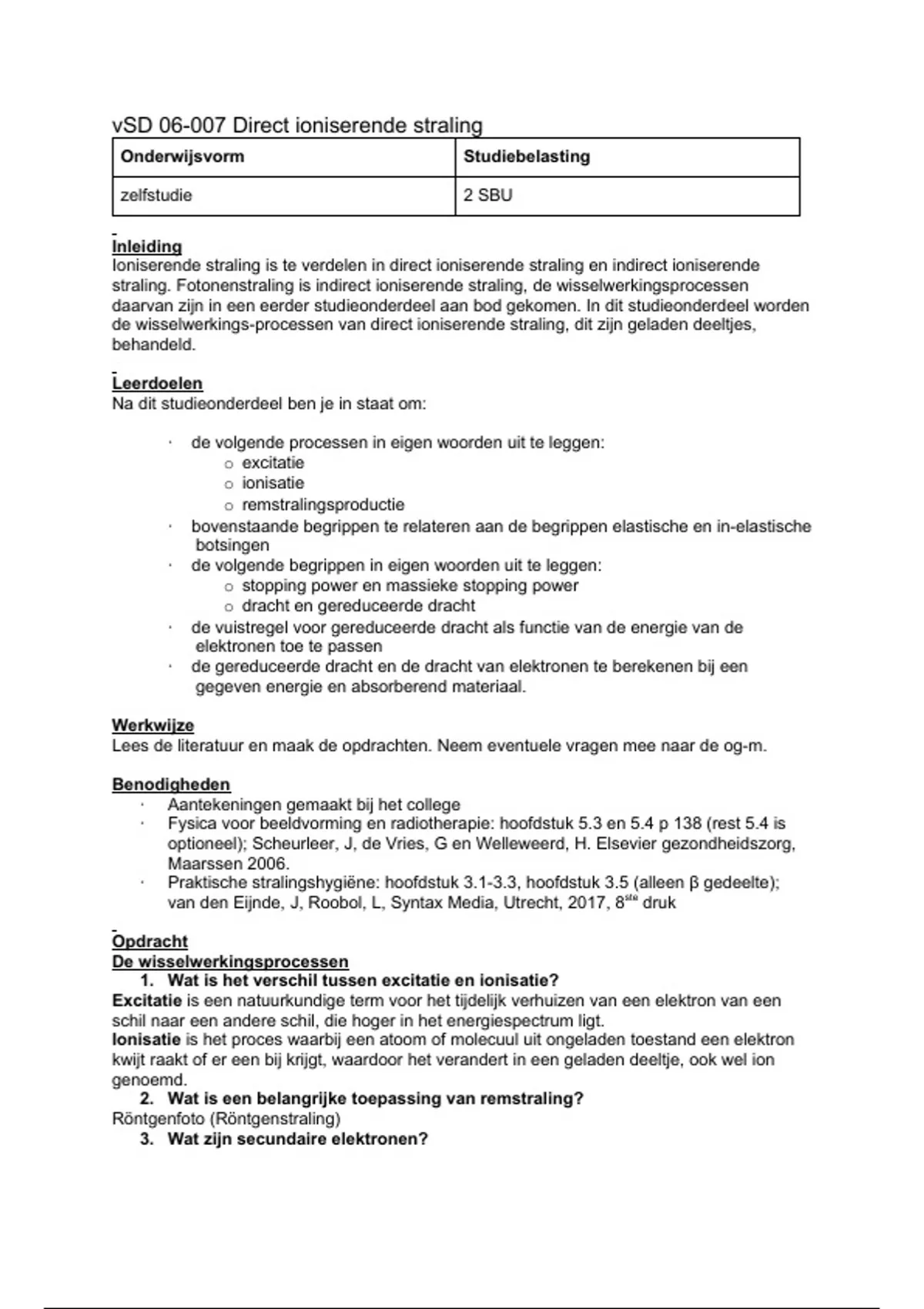 · Praktische stralingshygiëne: hoofdstuk 3.1-3.3, hoofdstuk 3.5 (alleen β gedeelte);