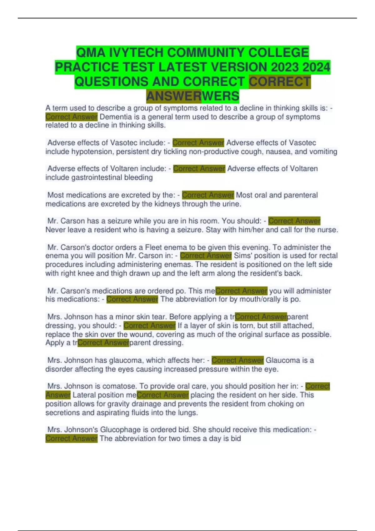 - QMA IVYTECH COMMUNITY COLLEGE PRACTICE