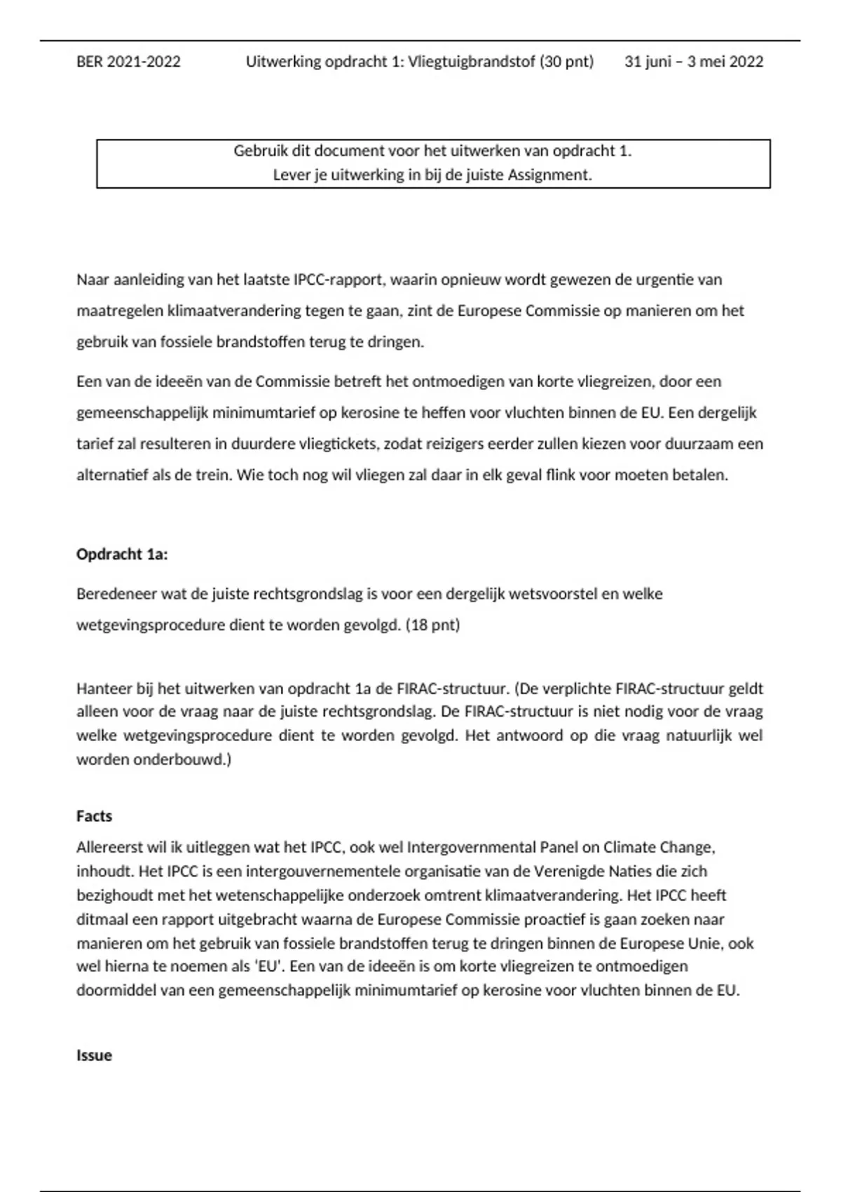 , BER 2021-2022 Uitwerking opdracht 1: Vliegtuigbrandstof (30 pnt) 31 juni – 3 mei 2022