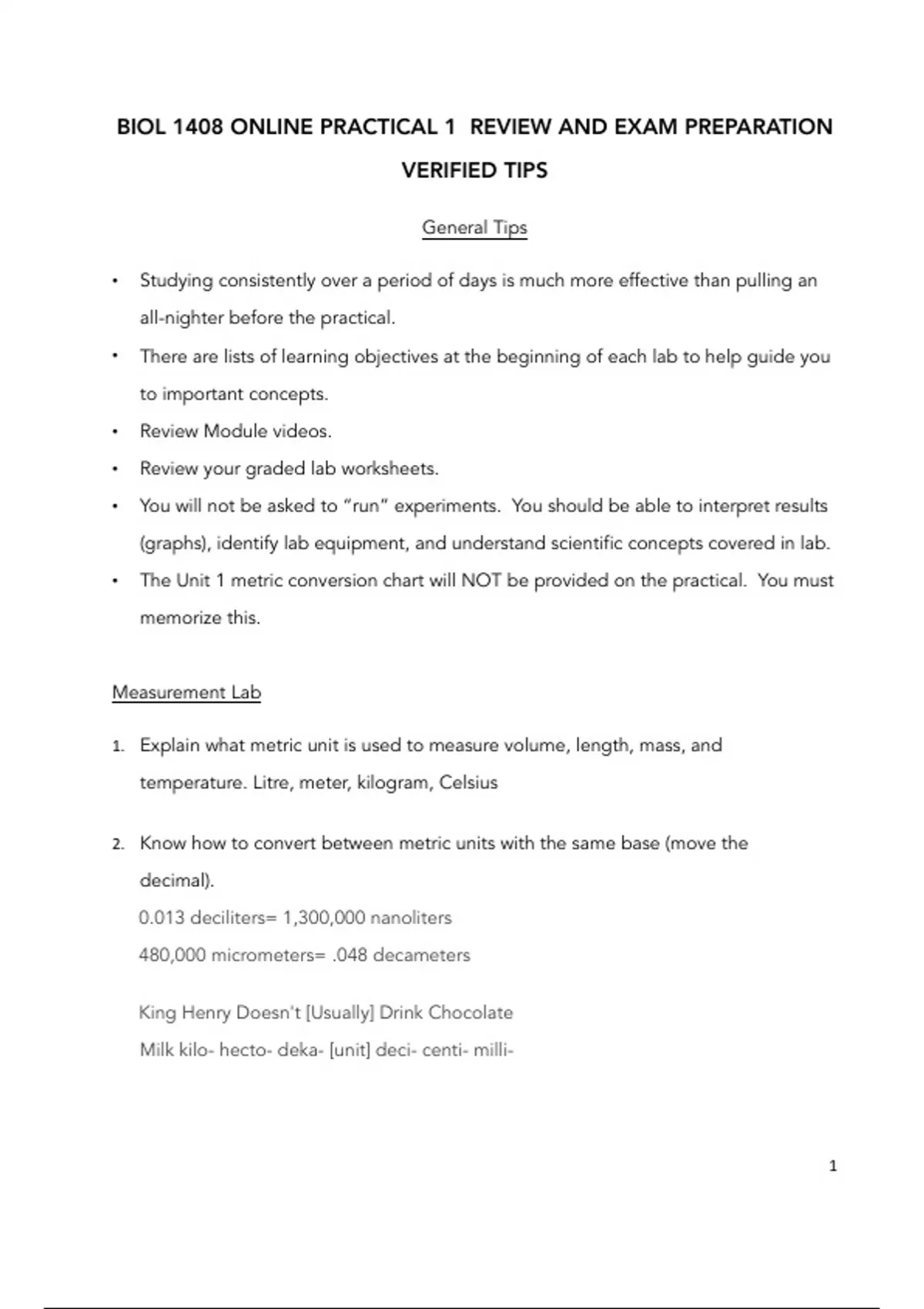 BIOL 1408 ONLINE PRACTICAL 1 REVIEW AND EXAM PREPARATION VERIFIED TIPS
