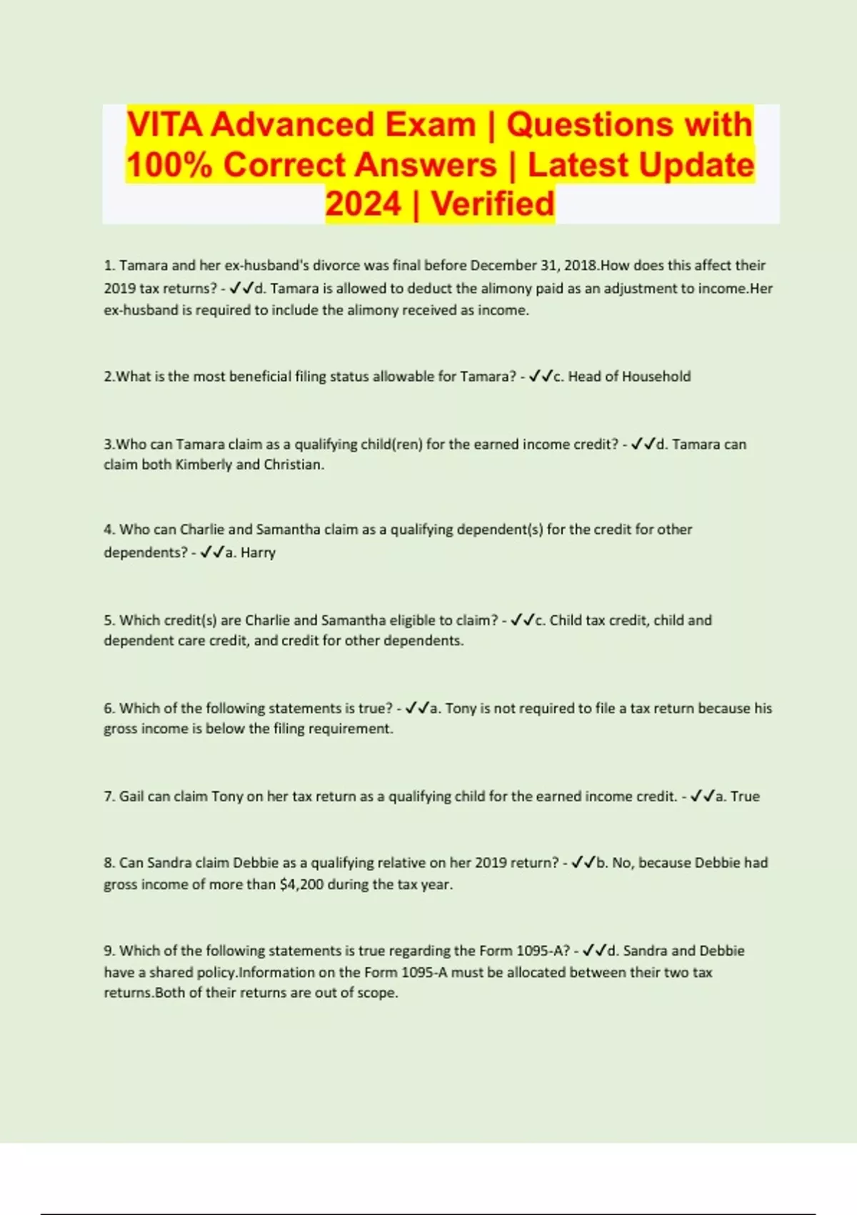 VITA Advanced Exam | Questions with 100% Correct Answers | Latest Update 2024 | Verified