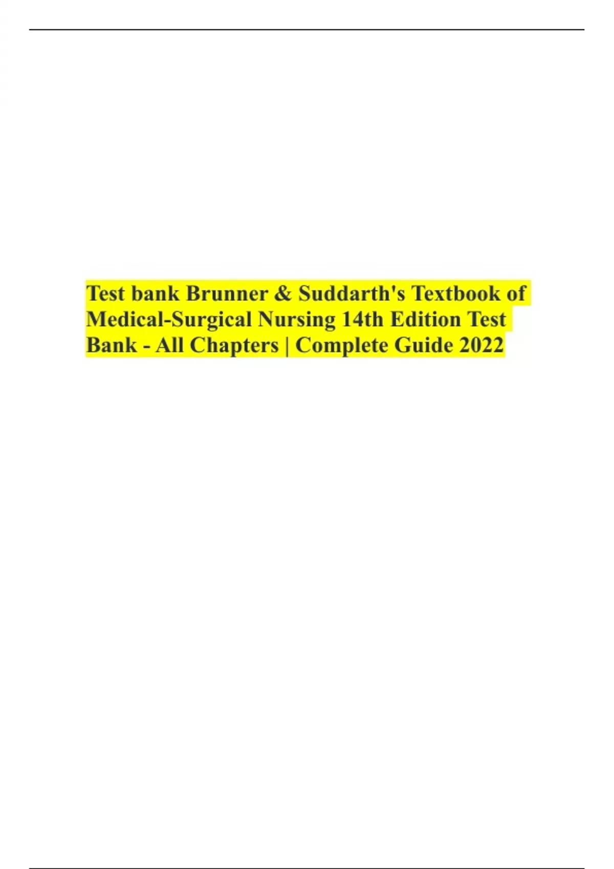 Test bank Brunner & Suddarth's Textbook of Medical-Surgical Nursing 14th Edition Test Bank - All Chapters | Complete Guide 2022