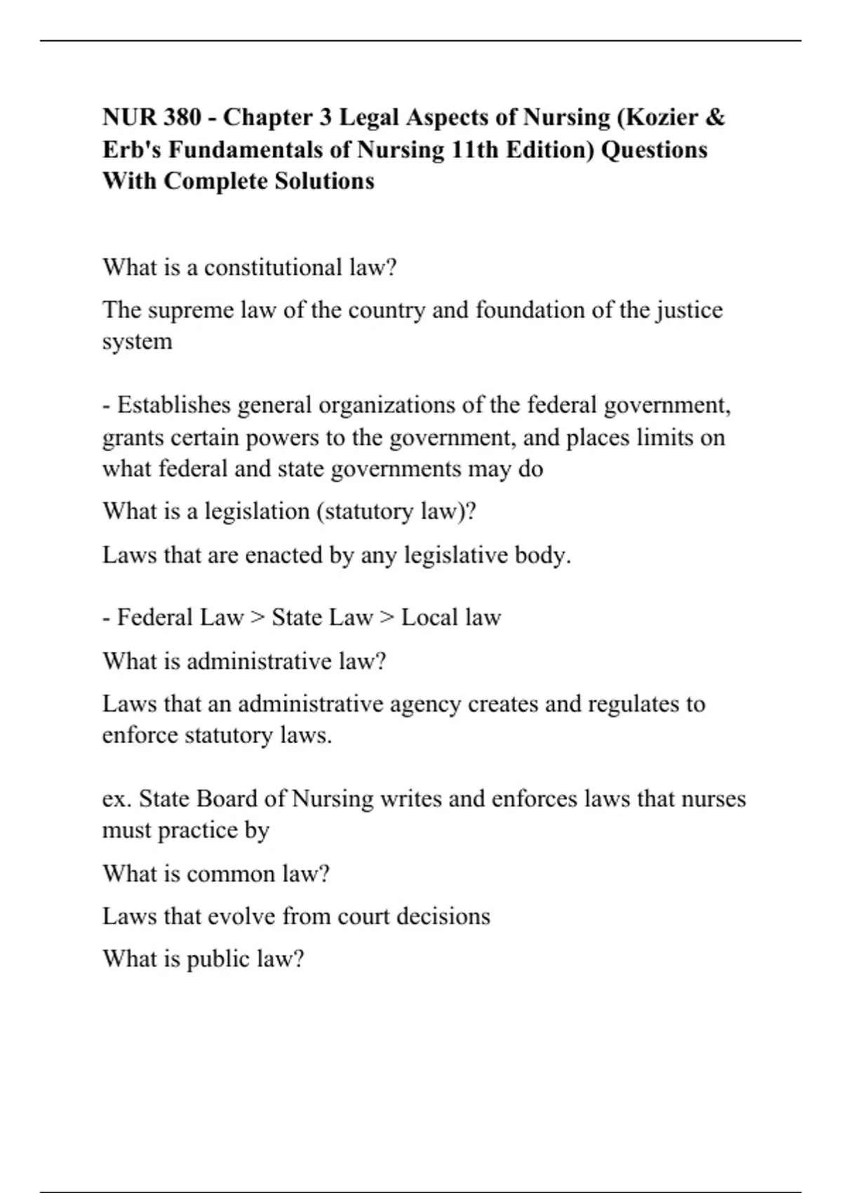 NUR 380 Fundamentals Exam 2 Questions With Complete Solutions