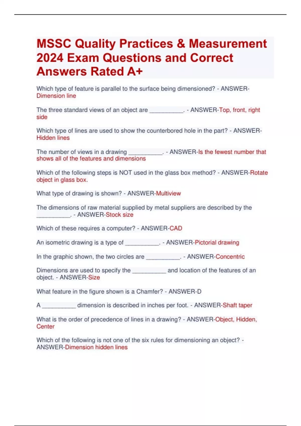 MSSC Quality Practices & Measurement 2024 Exam Questions and Correct Answers Rated A+