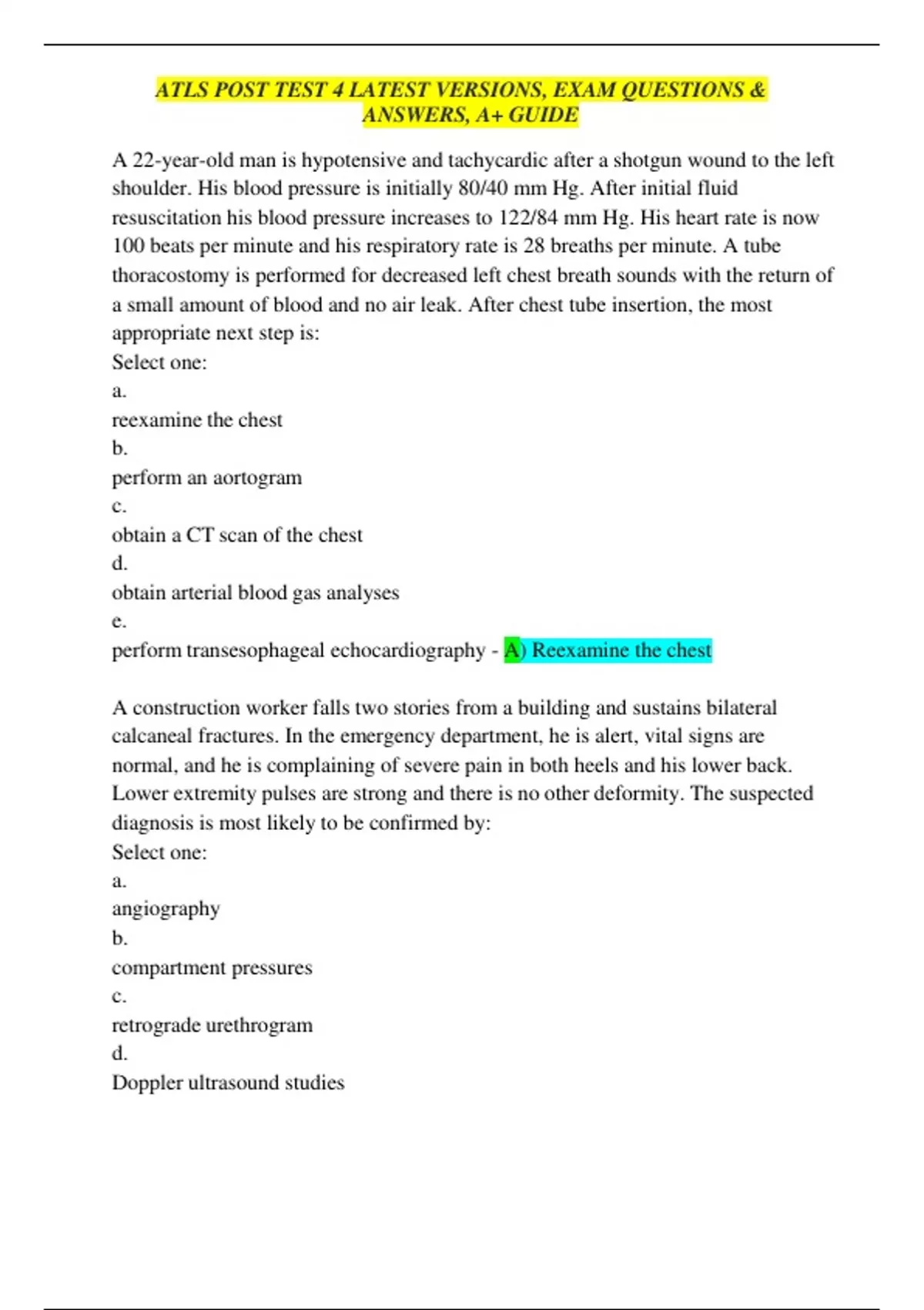 ATLS POST TEST 4 LATEST VERSIONS, EXAM QUESTIONS & ANSWERS, A+ GUIDE
