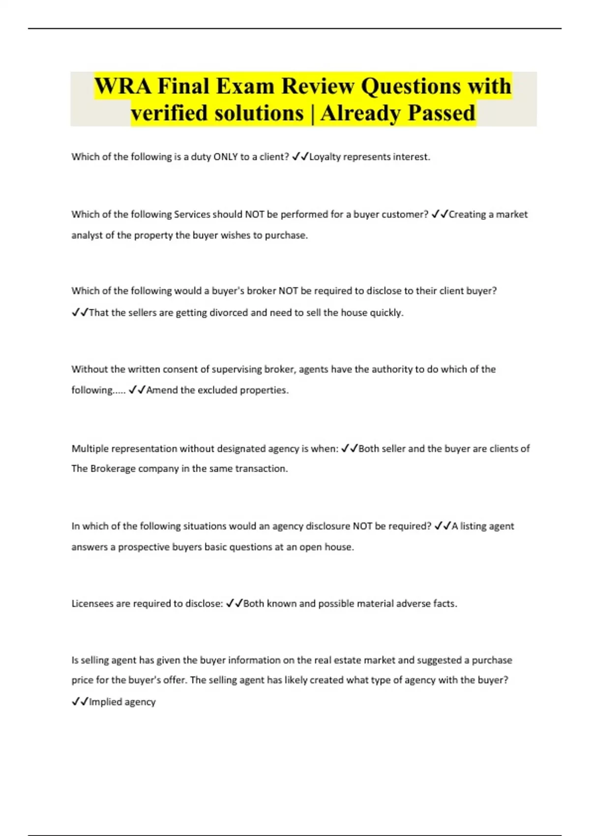 WRA Final Exam Review Questions with verified solutions | Already Passed