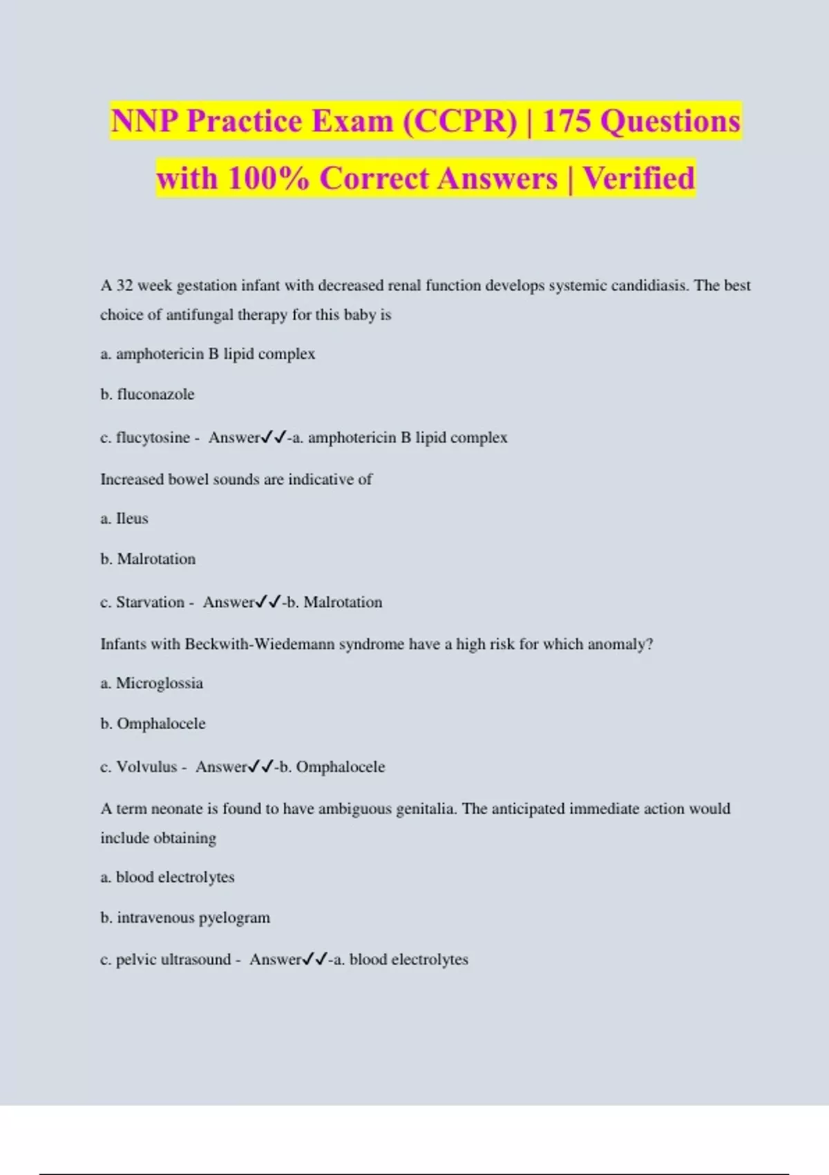 NNP Practice Exam (CCPR) | 175 Questions with 100% Correct Answers