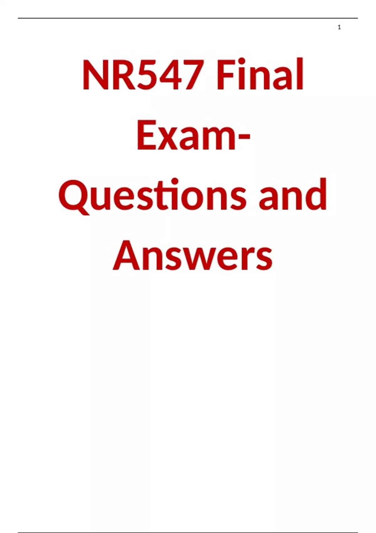 NR547 Final Exam- Questions and Answers