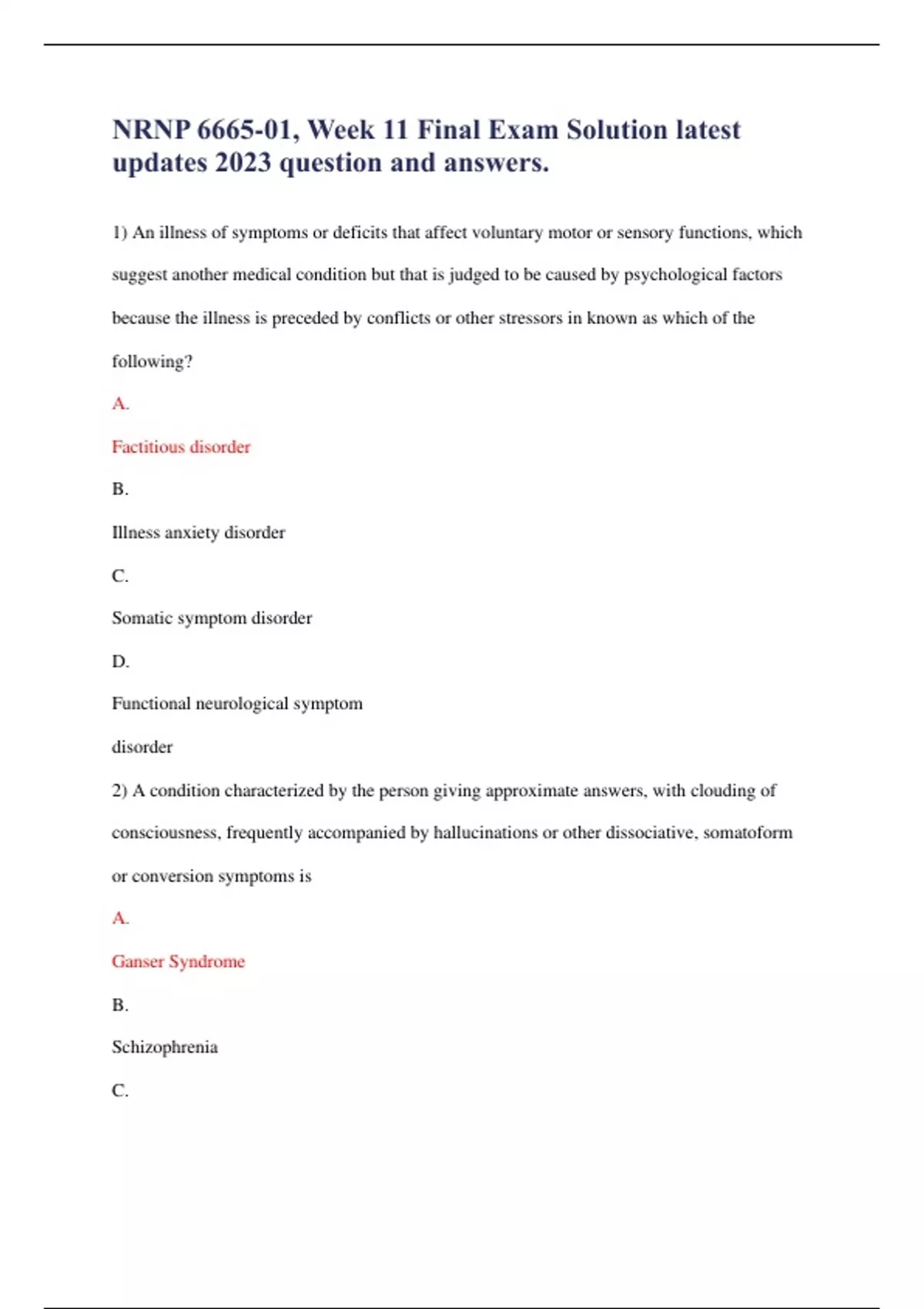 NRNP 6665-01, Week 11 Final Exam Solution latest updates 2023 question and answers.