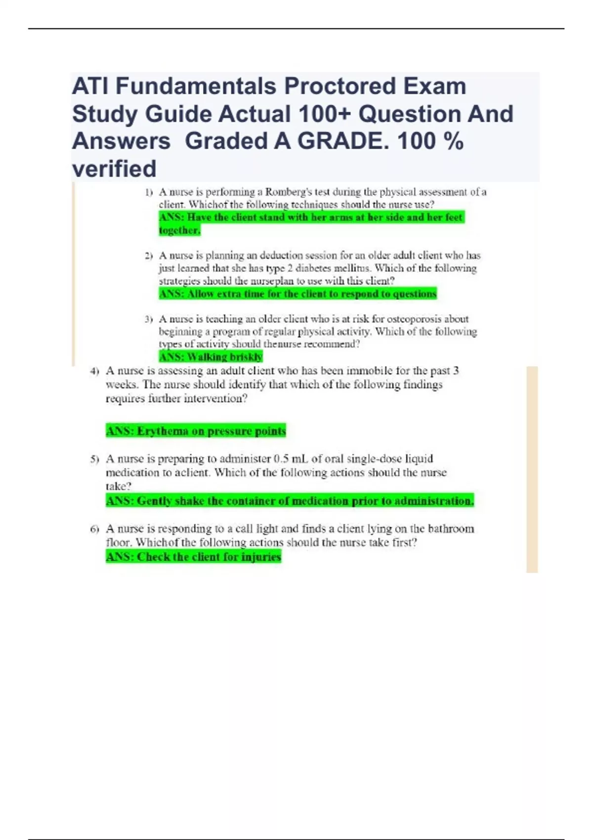 ATI Fundamentals Proctored Exam Study Guide Actual 100+ Question And Answers Graded A GRADE. 100 % verified