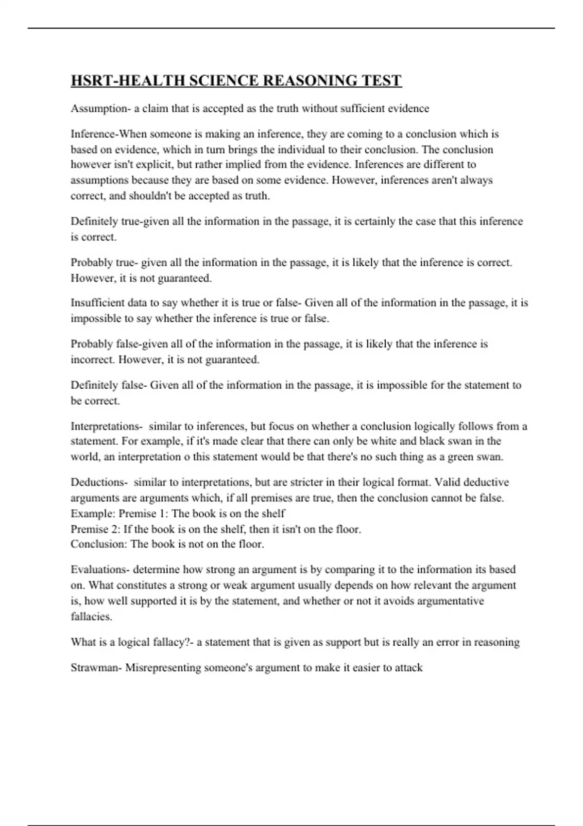 HSRT-HEALTH SCIENCE REASONING