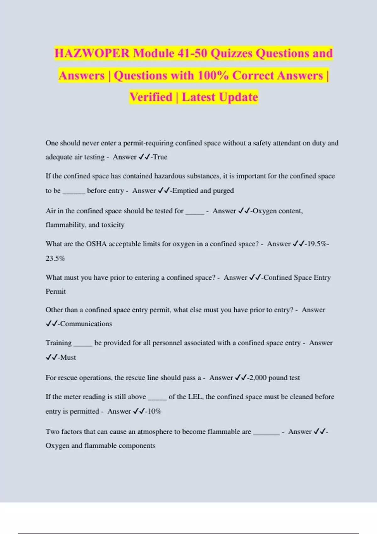 HAZWOPER Module 41-50 Quizzes Questions and Answers | Questions with 100% Correct Answers | Verified | Latest Update