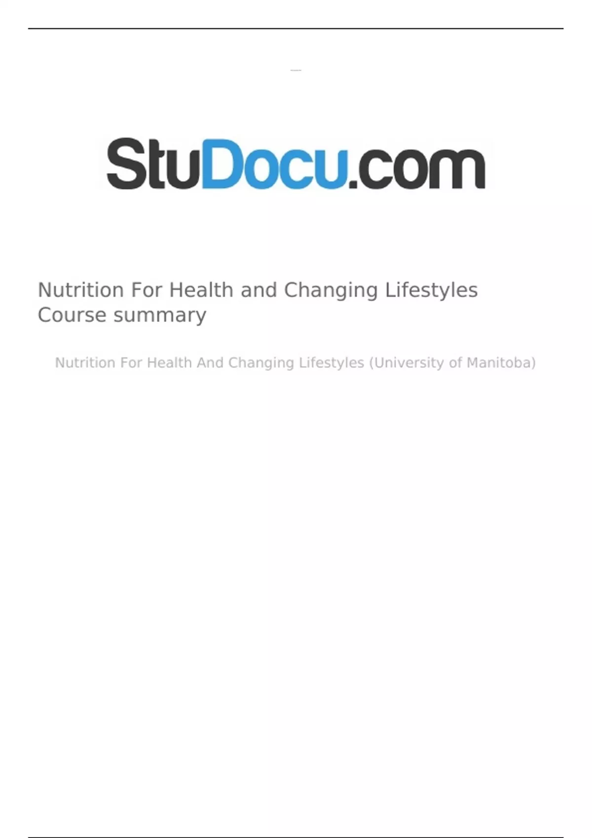 Nutrition For Health and Changing Lifestyles Course summary