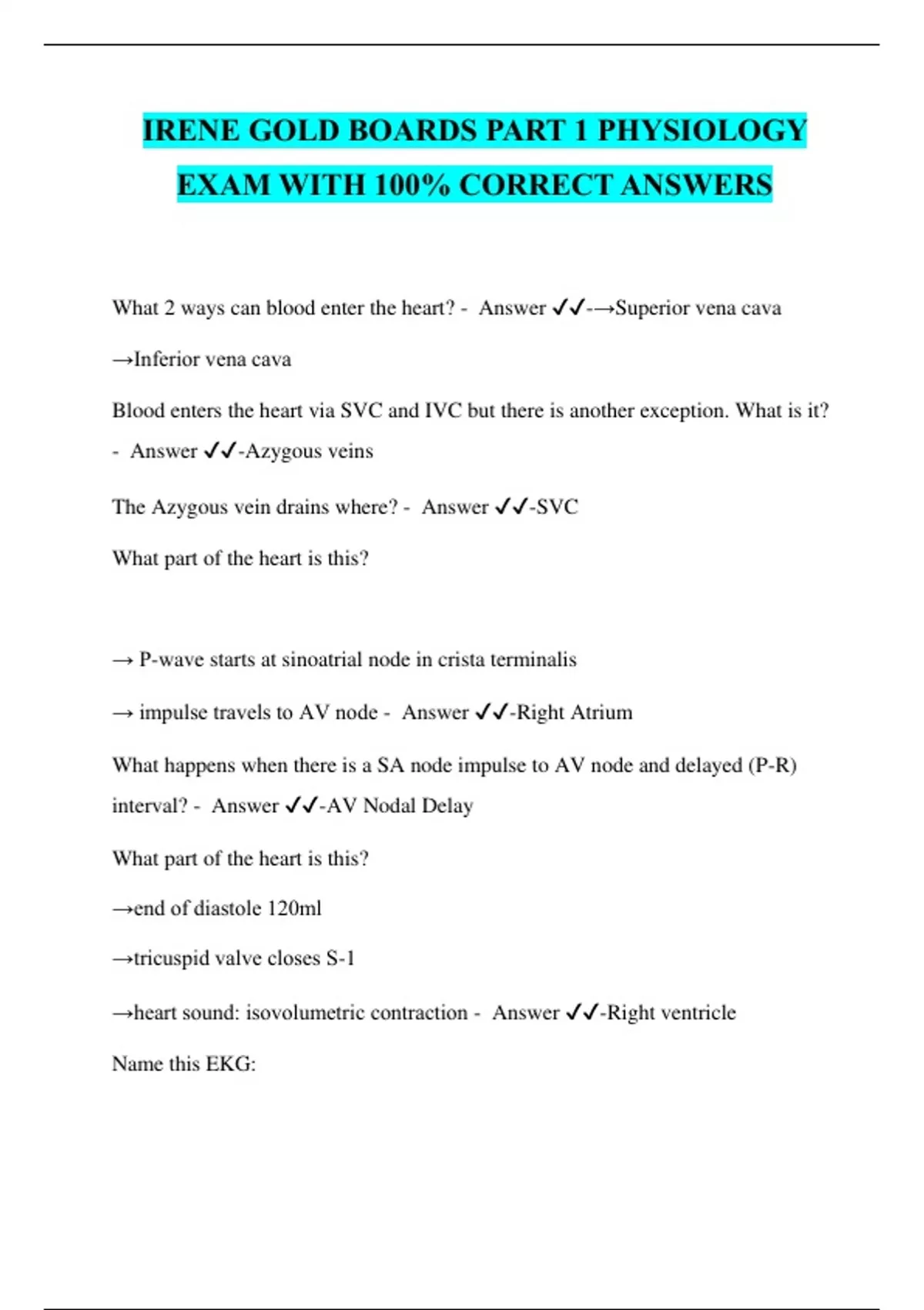 IRENE GOLD BOARDS PART 1 PHYSIOLOGY EXAM WITH 100% CORRECT ANSWERS