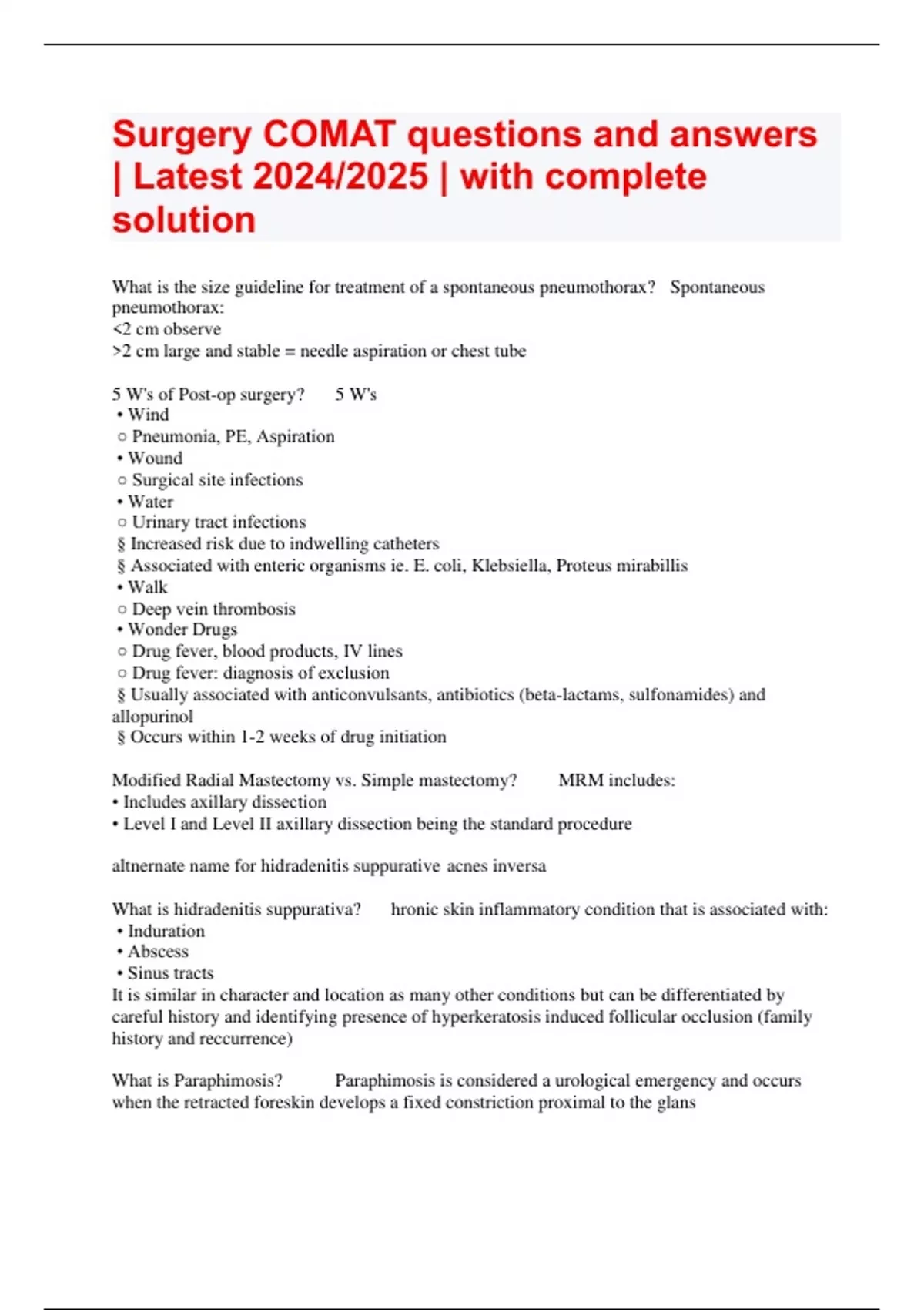 Surgery COMAT questions and answers | Latest 2024/2025 | with complete solution