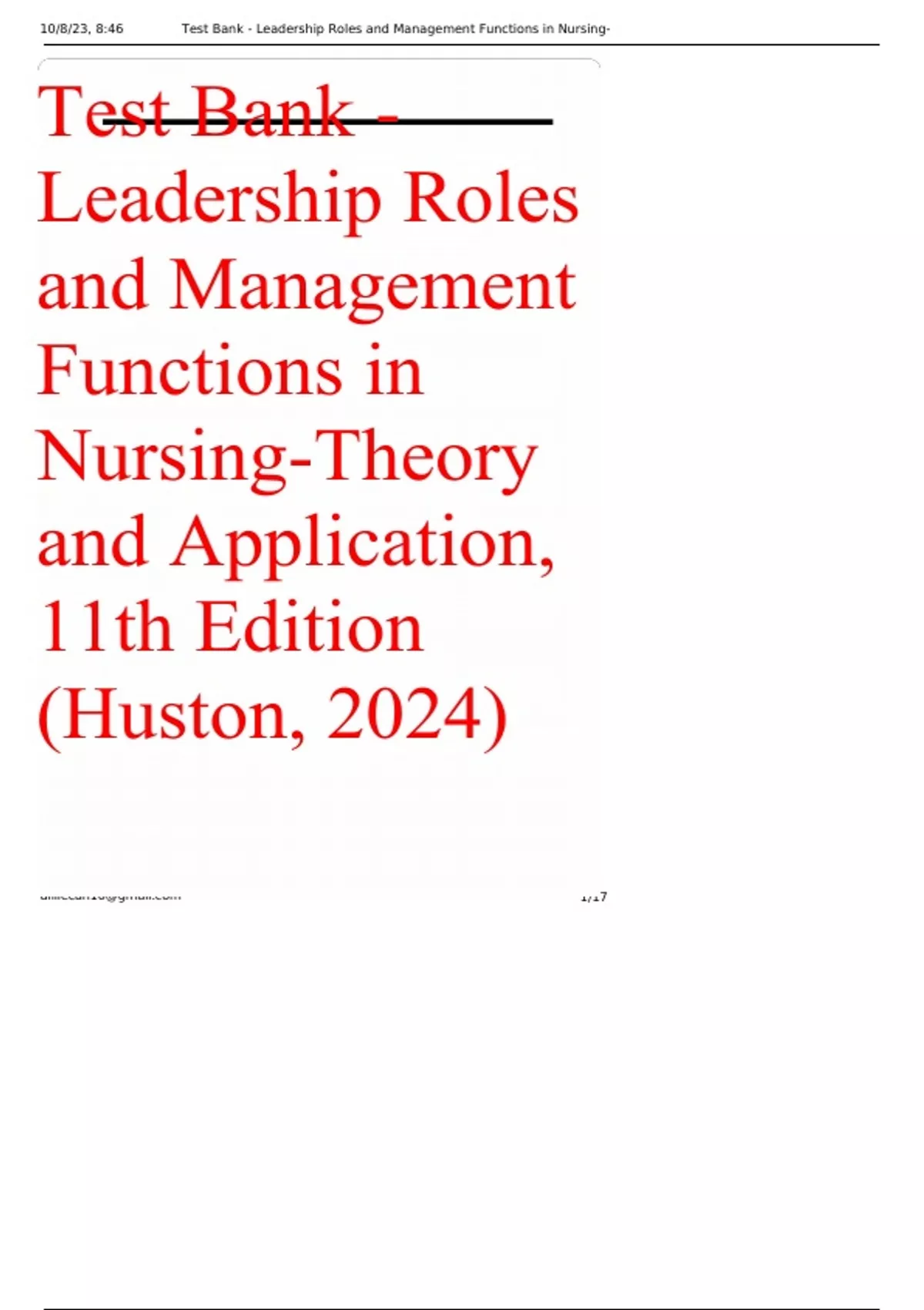 Test bank leadership roles and management functions in nursing theory and application 11th edition huston Latest Update