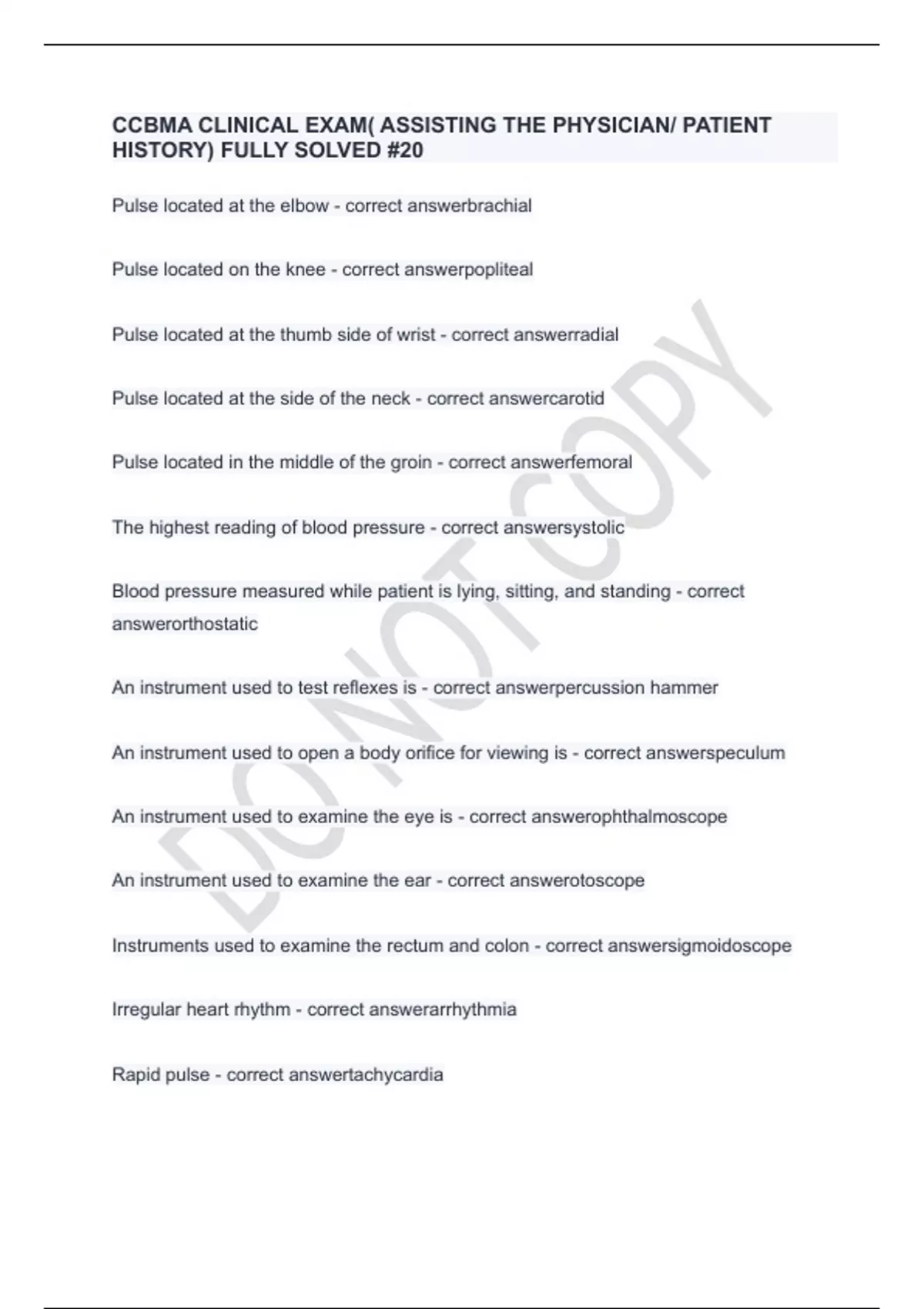 CCBMA CLINICAL EXAM( ASSISTING THE PHYSICIAN/ PATIENT HISTORY) FULLY SOLVED #20