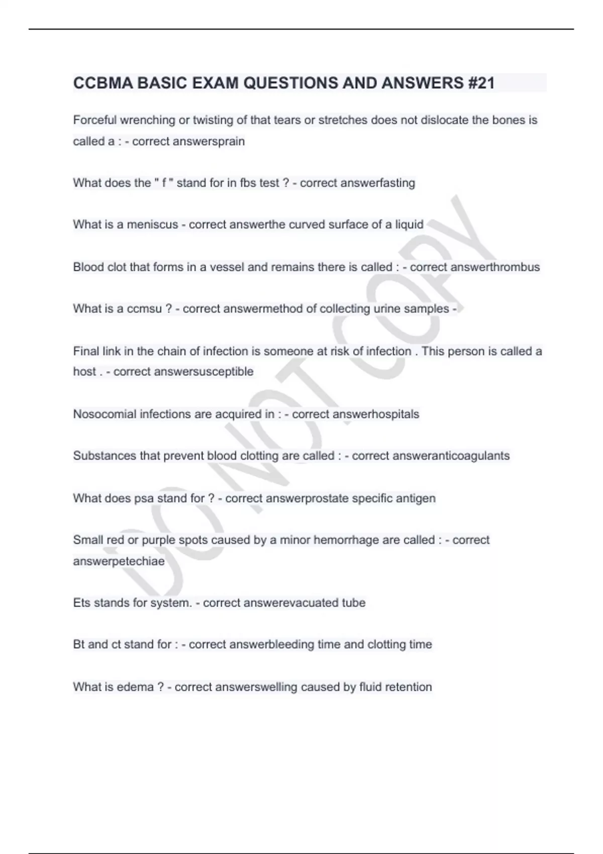 CCBMA BASIC EXAM QUESTIONS AND ANSWERS #21.