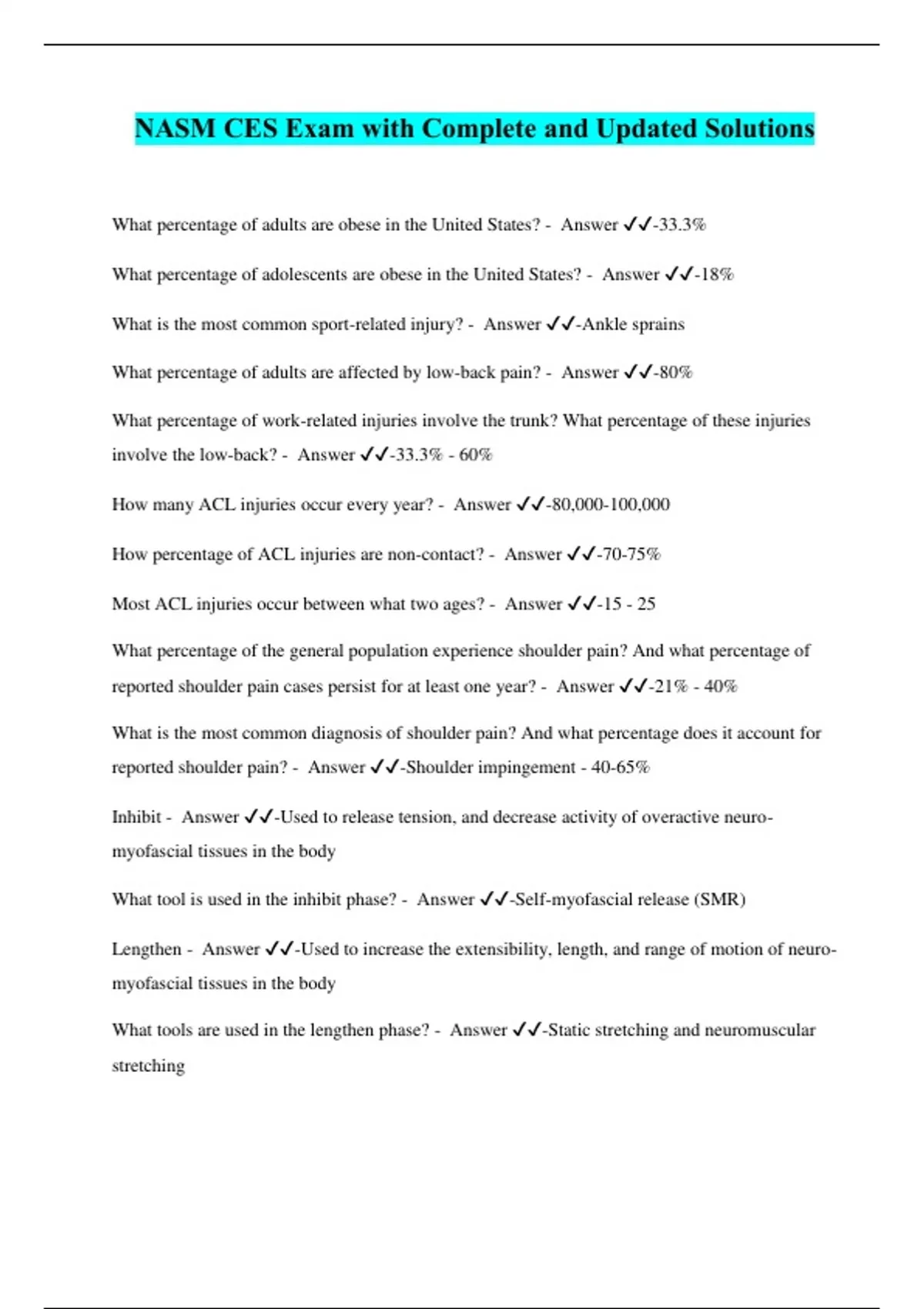 NASM CES Exam with Complete and Updated Solutions