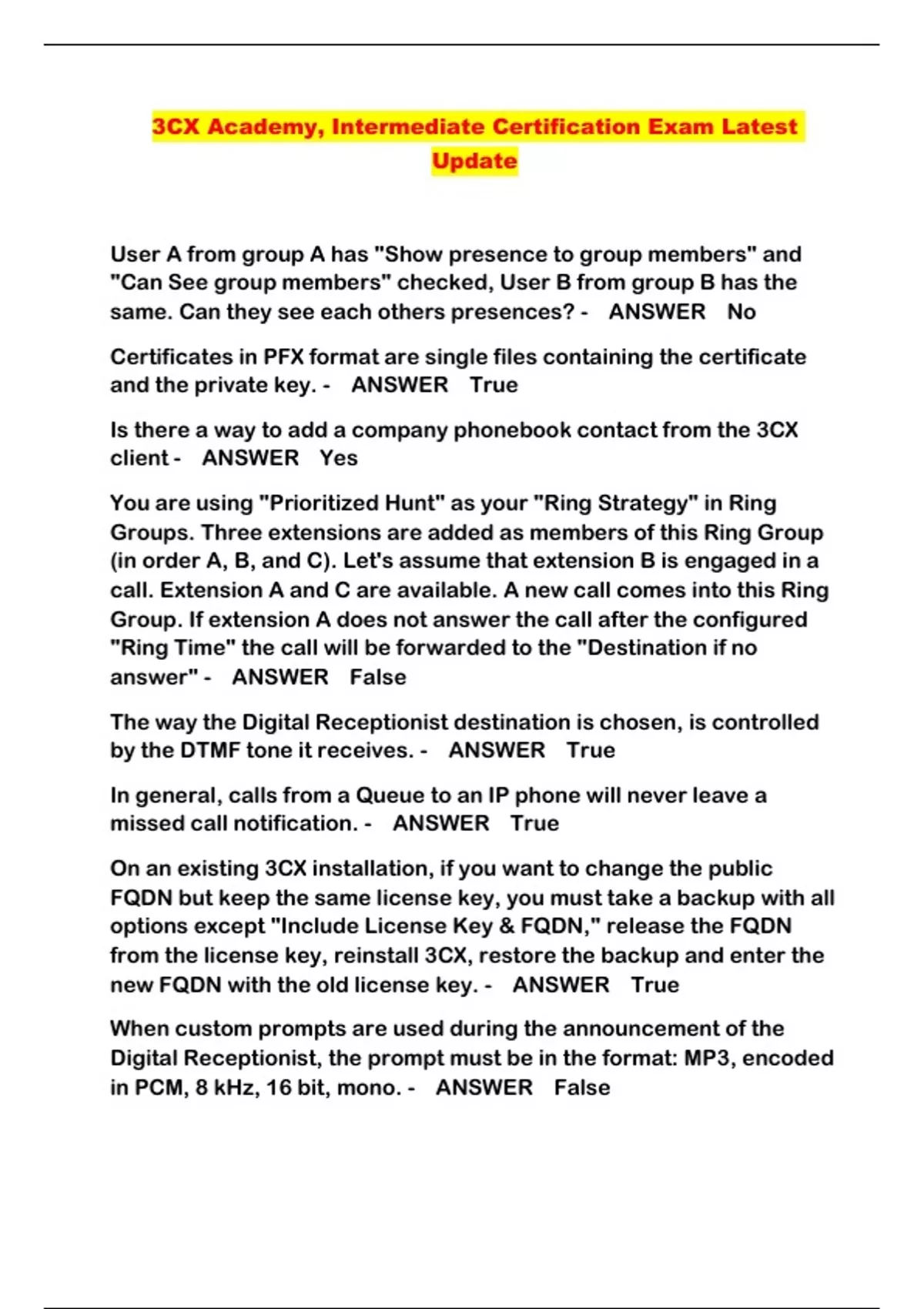 3CX Academy, Intermediate Certification Exam Latest Update...