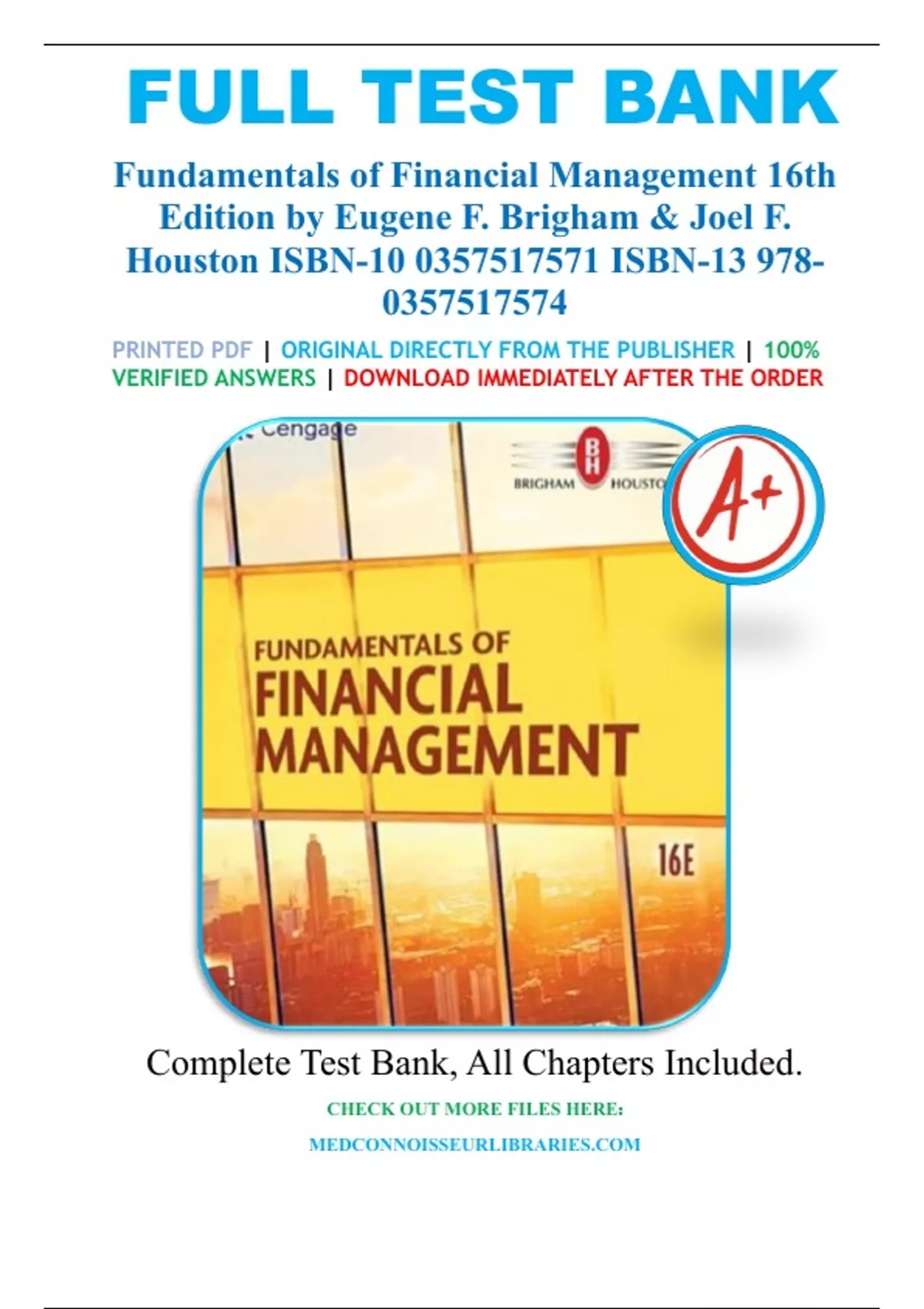 Test Bank for Fundamentals of Financial Management,16t h Edition by Eugene F. Brigham
