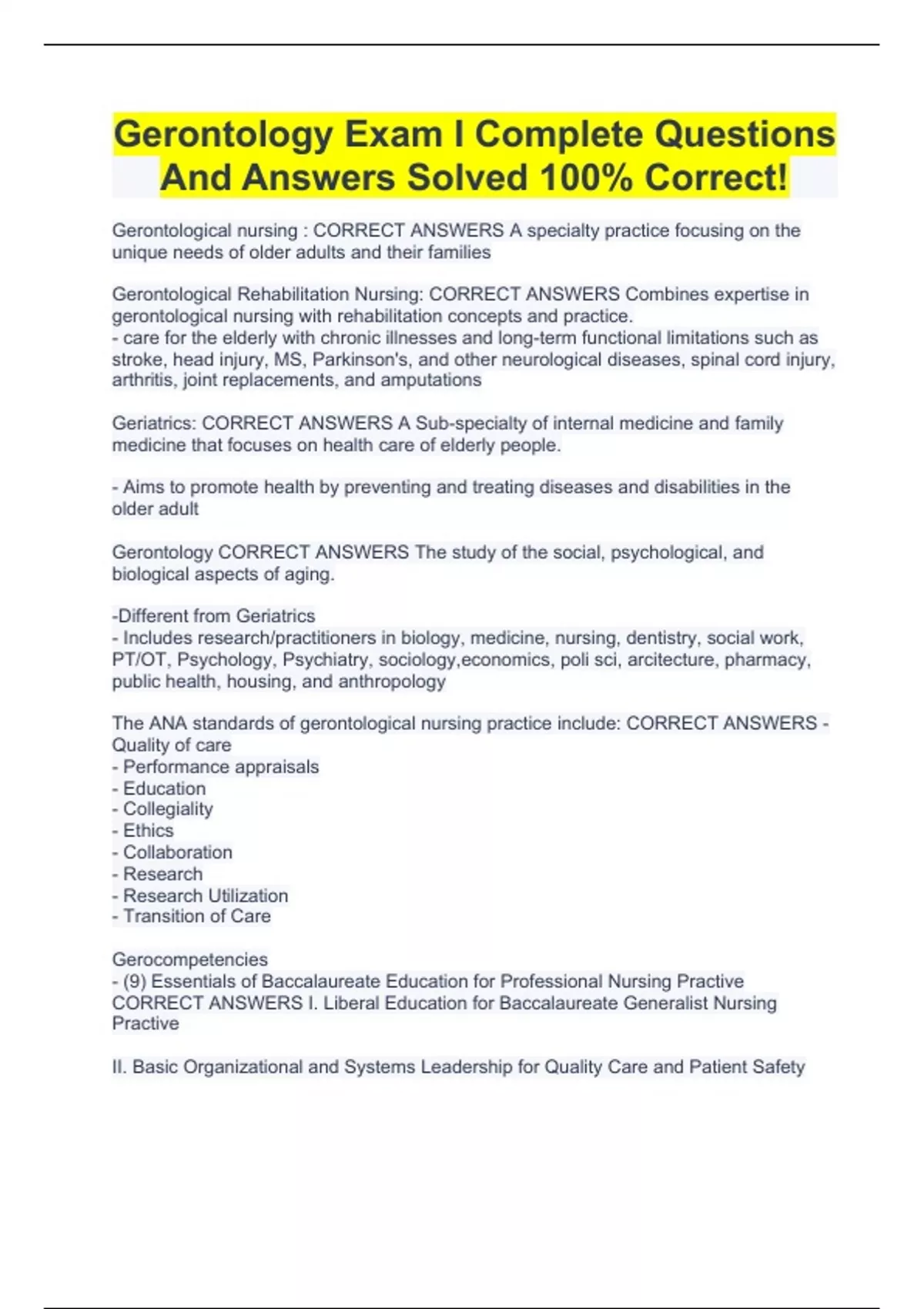 gerontology exam i complete questions and answers