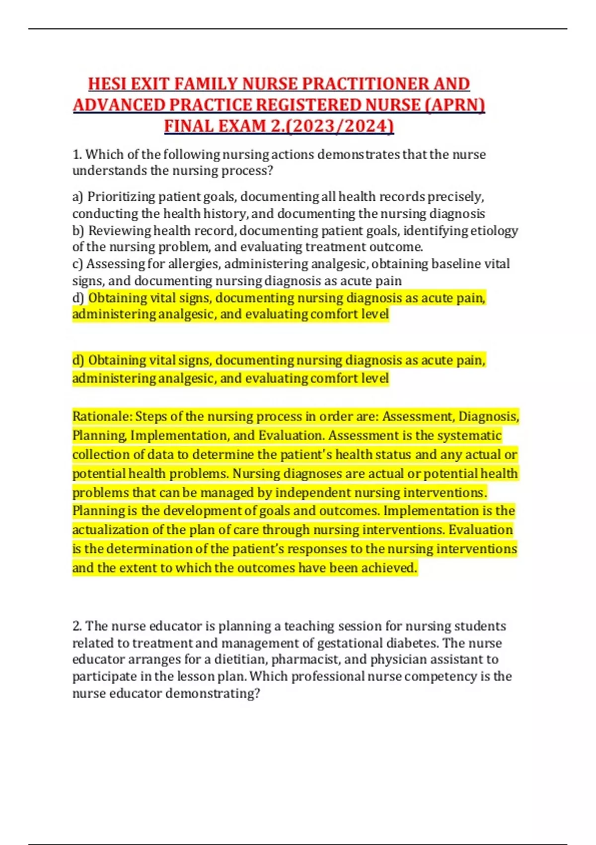 HESI EXIT FAMILY NURSE PRACTITIONER PRACTICE REGISTERED NURSE (APRN) FINAL EXAM 2.(2023/2024)