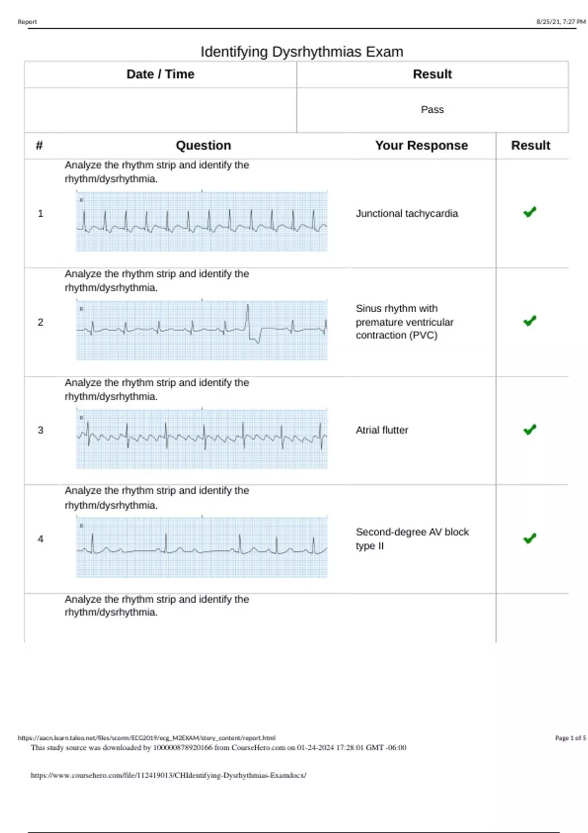 RA 2028 CH.Identifying Dysrhythmias Exam |100% COMPLETE QUESTIONS AND ANSWERS, study guide, Review Exam and Assignments (reviews GRADED A+-2024.