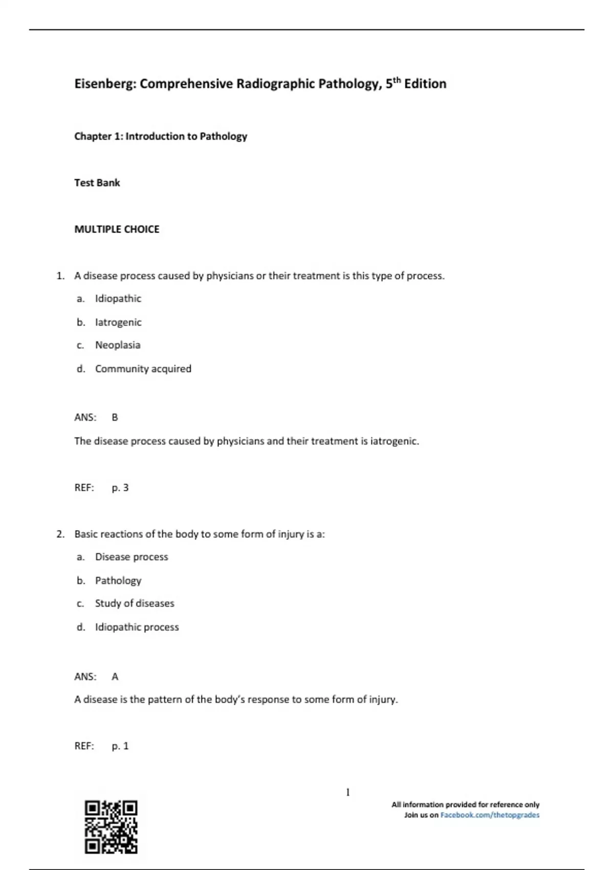 Test Bank for Comprehensive Radiographic Pathology 7th Edition by Eisenberg With All Chapter Questions and Detailed Correct Answers 100% Complete Solution Guaranteed Success