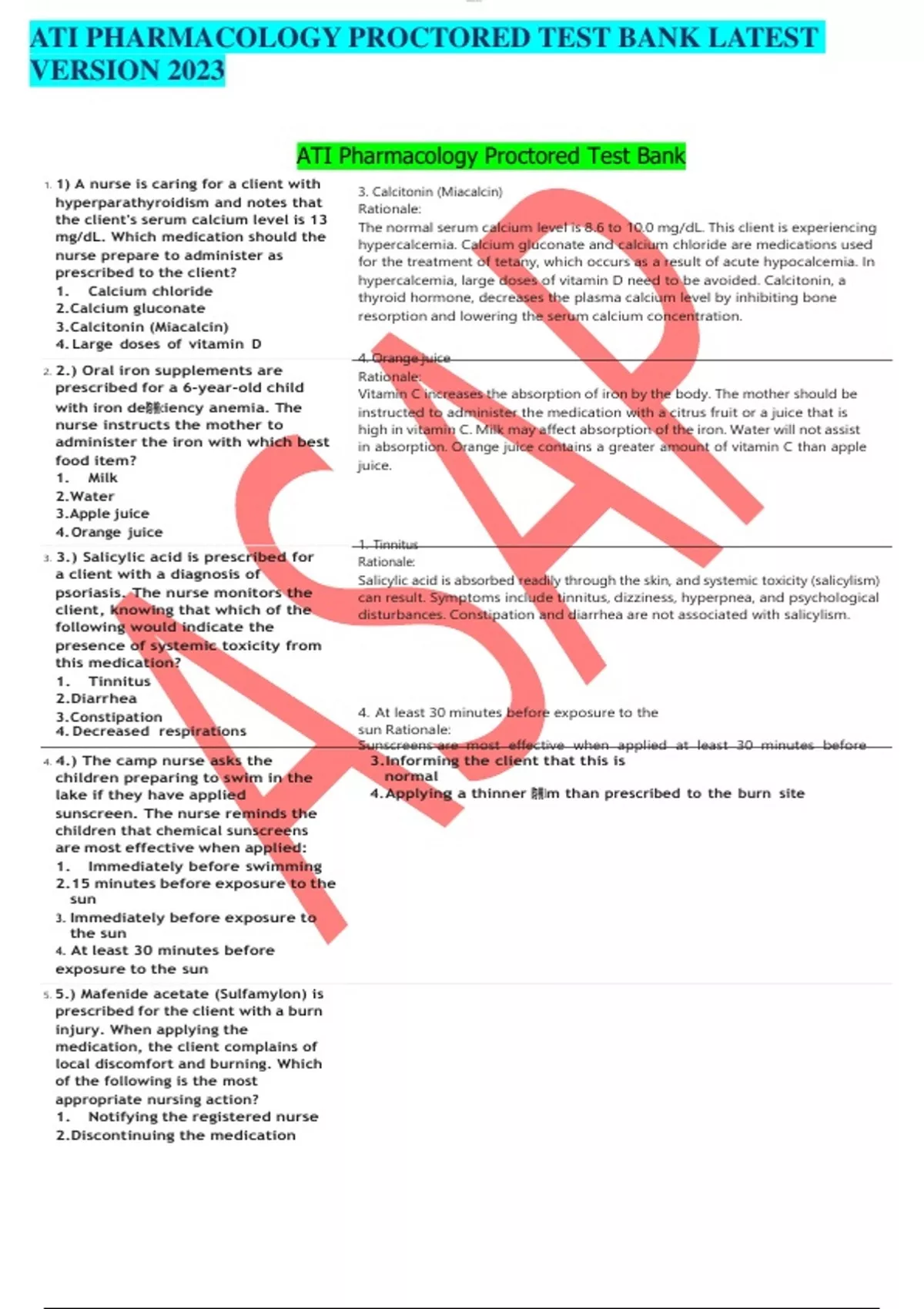 ATI PHARMACOLOGY PROCTORED TEST BANK LATEST VERSION 2023