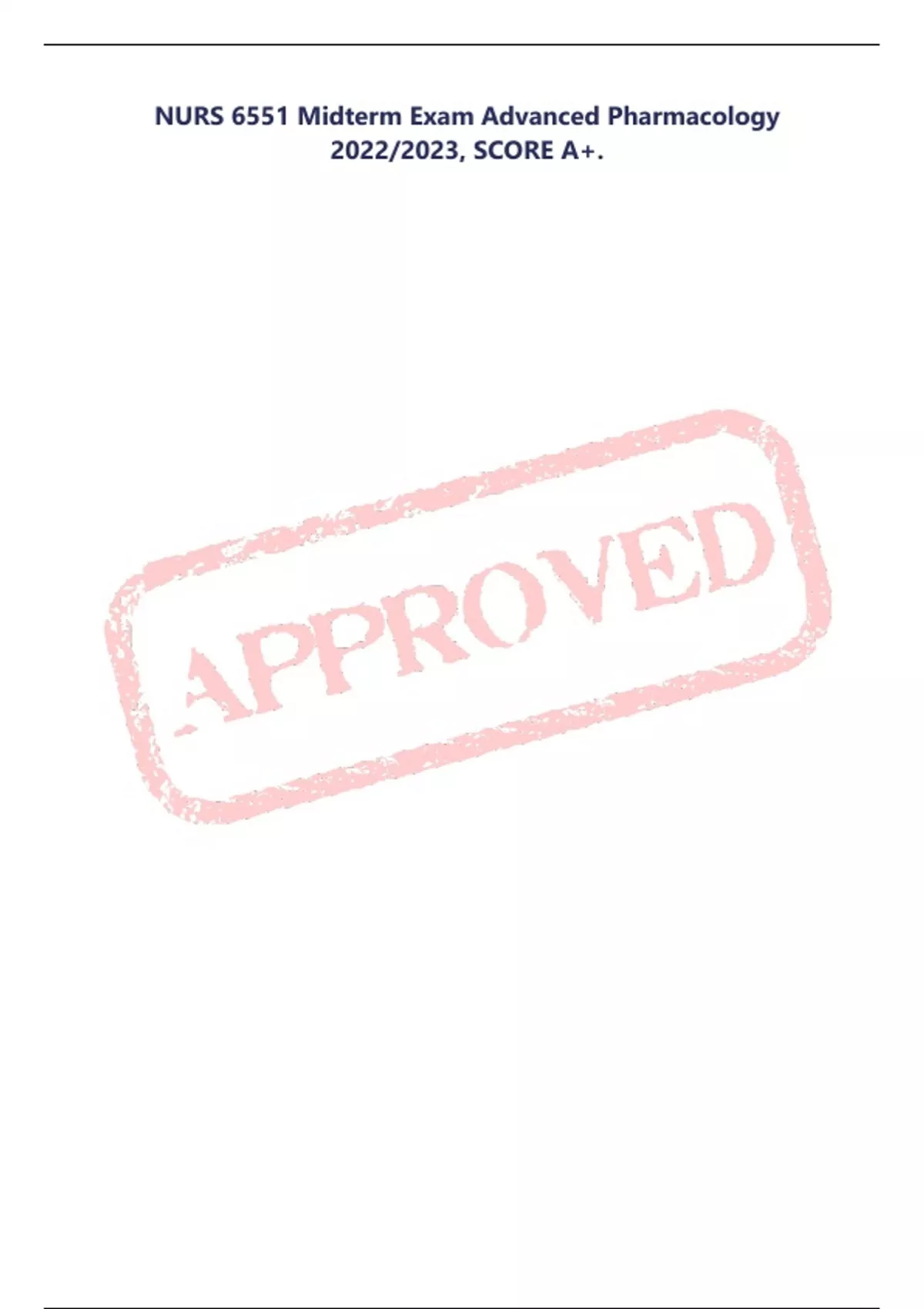 NURS 6551 Midterm Exam Advanced Pharmacology 2022/2023, SCORE A+.
