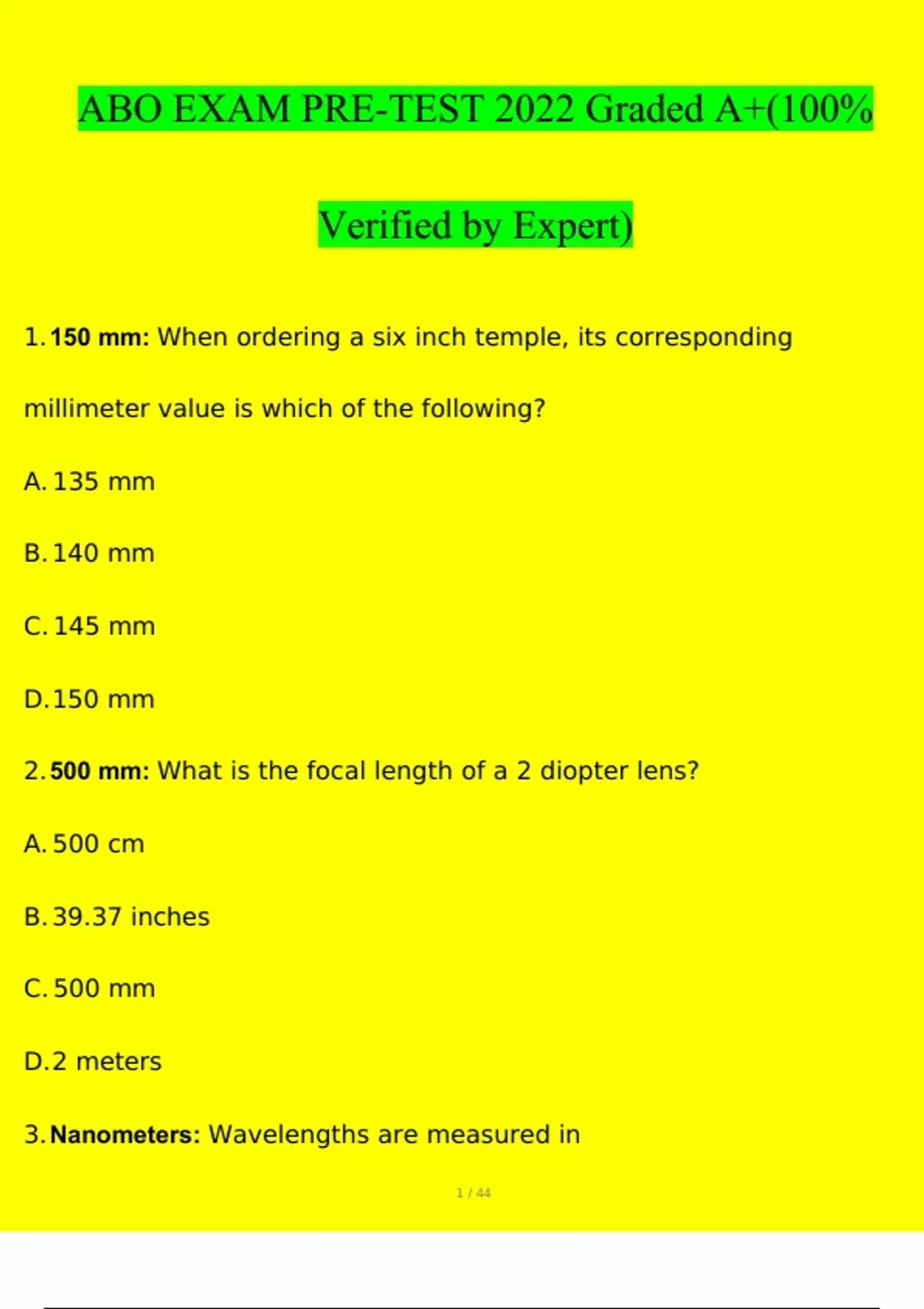 ABO EXAM PRE-TEST 2022 Graded A+(100% Verified)