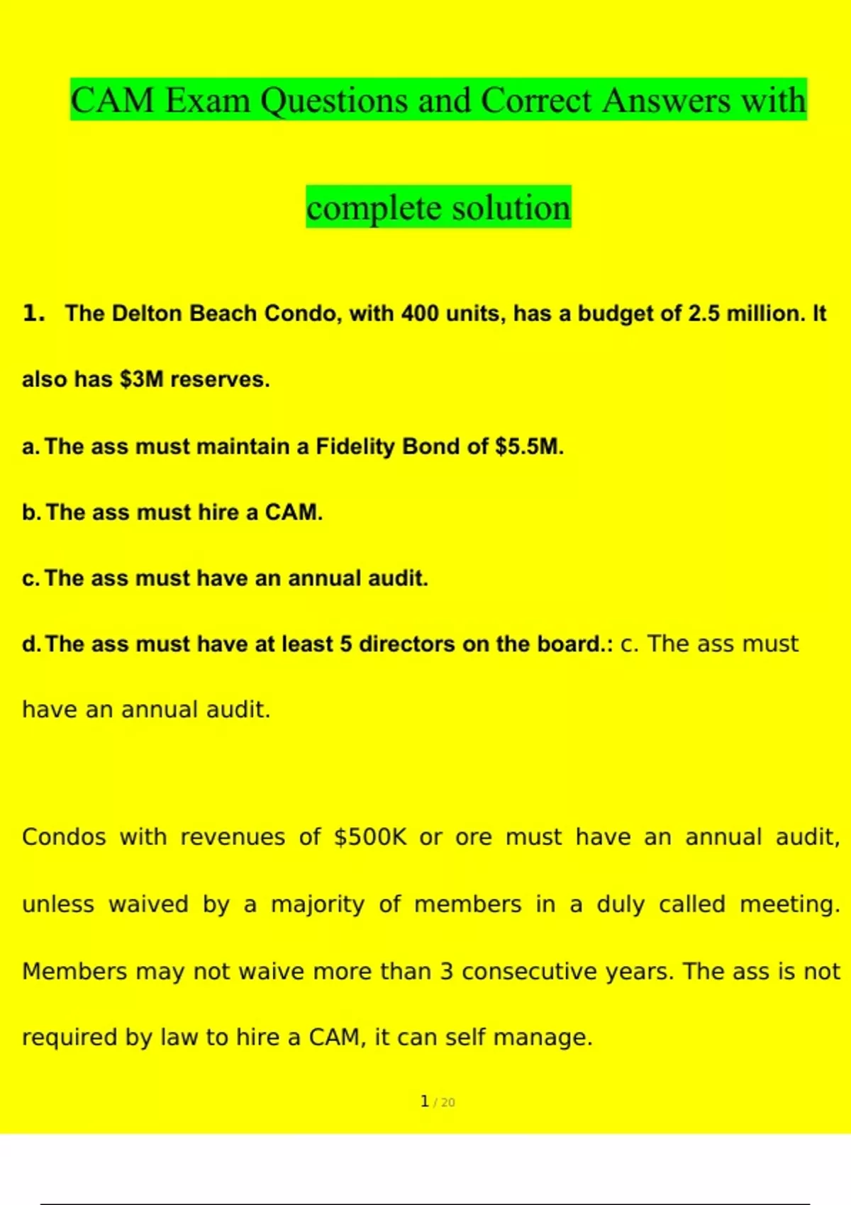 CAM Exam Questions with correct Answers