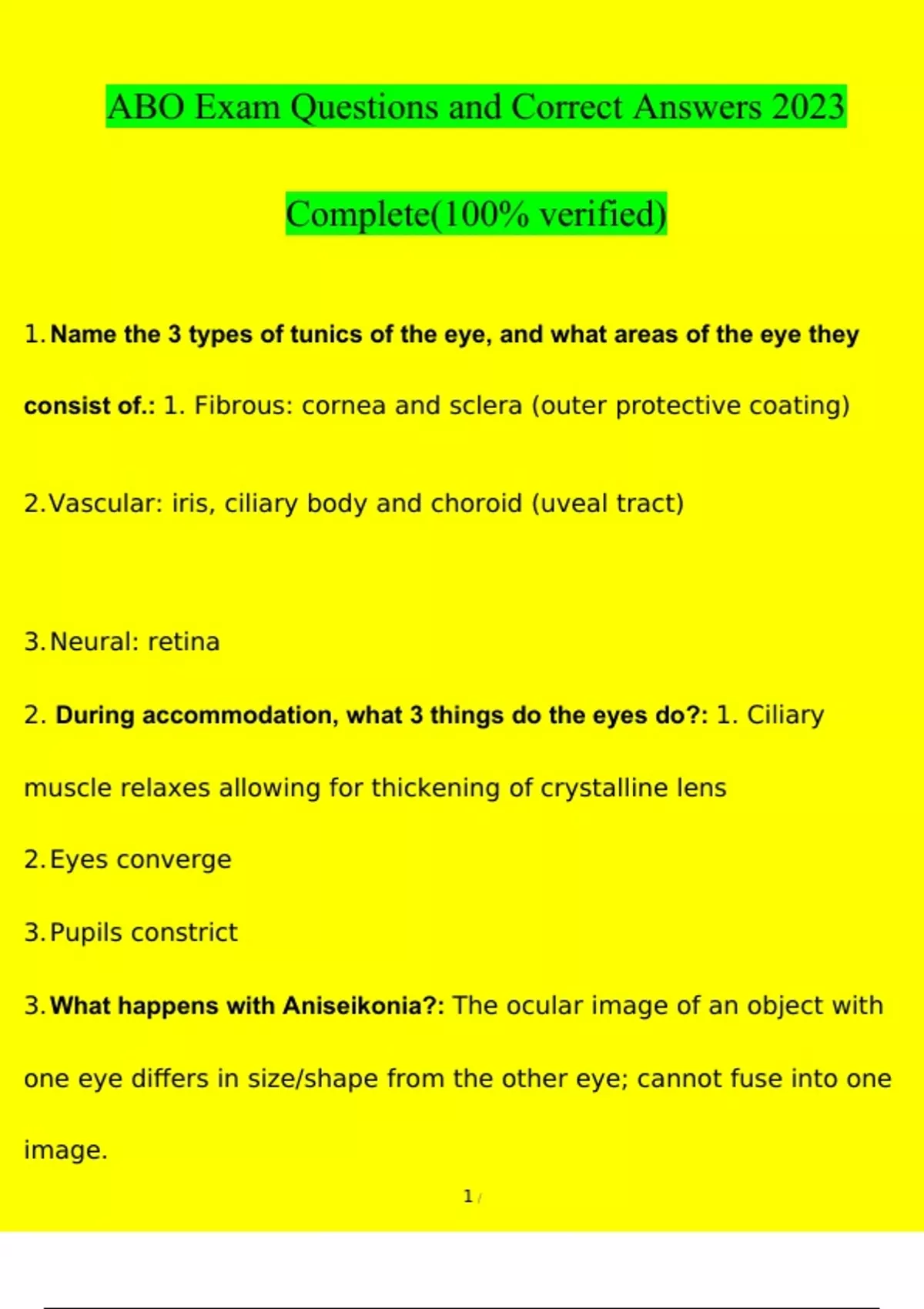 ABO Exam Questions and Answers 2023 Complete;100% verified